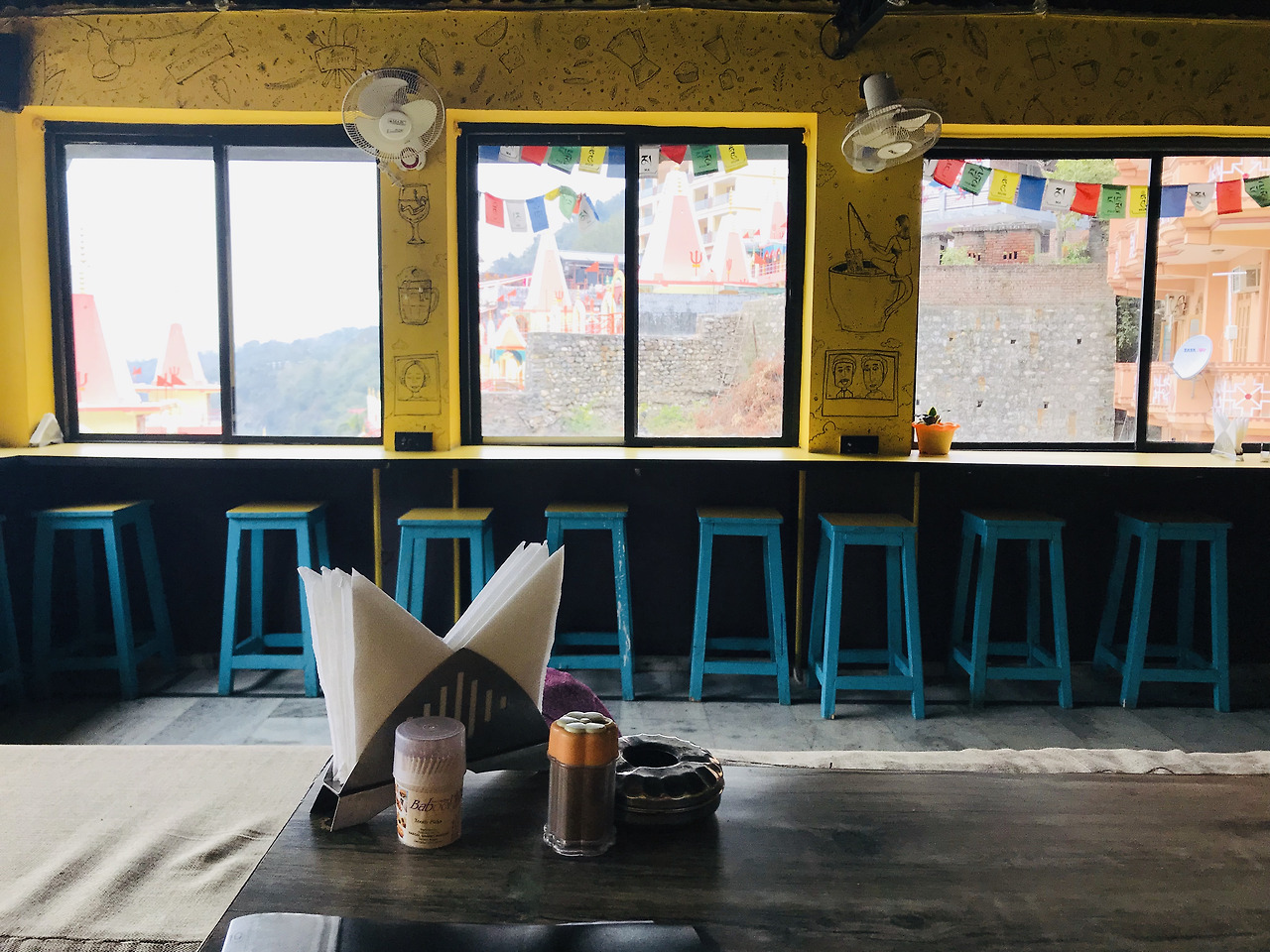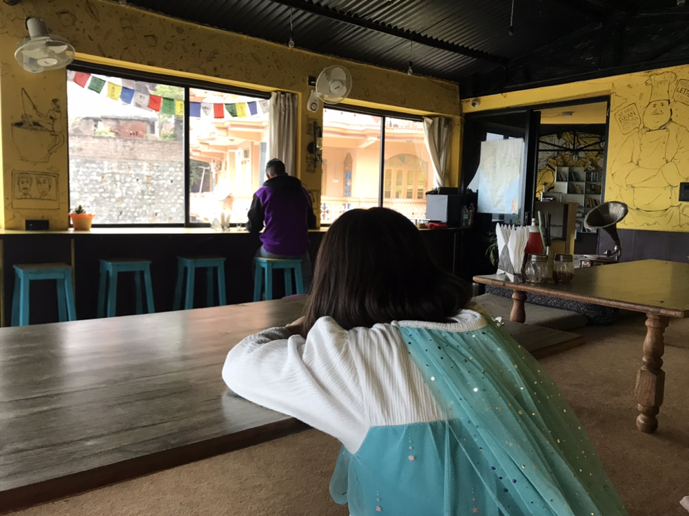 깍두기와 뜨신 물에 간단히 샤워를 했다. 깨끗하게 옷도 갈아입고 게스트하우스 1층으로 내려가니 자얀트씨가 계셨다. 리시케시에는 여러 개의 아쉬람(요가수행자들이 머무르면 수련하는 곳쯤으로 생각하면 된다) 이 있는데 그중 가장 크고 명성이 있는? 아쉬람 중 하나가 파르마뜨니케탄(Parmath Niketan Ashram) 아쉬람인 듯 보였다. 명성은 별로 믿을게 못된다는 걸 여러 차례 경험해봐서 기대치는 없었다. 단지 7일간 열리는 International Yoga Festival이 그곳, 파르마뜨니케탄 아쉬람에서 열려서 우리의 첫 숙소로 당첨되었다. 한국에서 페스티벌 티켓을 미리 예약해두어서 오늘 오후에 그곳으로 이동해야 했다. 그 내용을 알고 있던 자얀트씨께서 우리가 10시에 타고 갈 수 있게 택시를 대신 예약해주셨다. 그리고 깍두기와 아침을 먹고 오라며 비틀즈 식당을 알려주셨다. 게스트하우스에서 오분 거리였다. 과거에 조지 해리슨을 주측으로 비틀즈 멤버들이 방문했던 리시케시. 그래서 리시케시를 비틀즈와 연결시키는 사람들이 아직도 많다. 비틀즈카페도 여행객들 사이에서 꽤 유명한 것 같았다. 그런데 갔더니 막상 문이 닫혀있어서 근처 다른 레스토랑을 찾아 들어갔다. 벽의 노란색이 시선을 잡아끌어서 그냥 들어갔더니 웃음이 환한 인도인 사장님과 일하는 청년들이 반갑게 맞이해준다. 땡그랗고 신기한 눈으로.