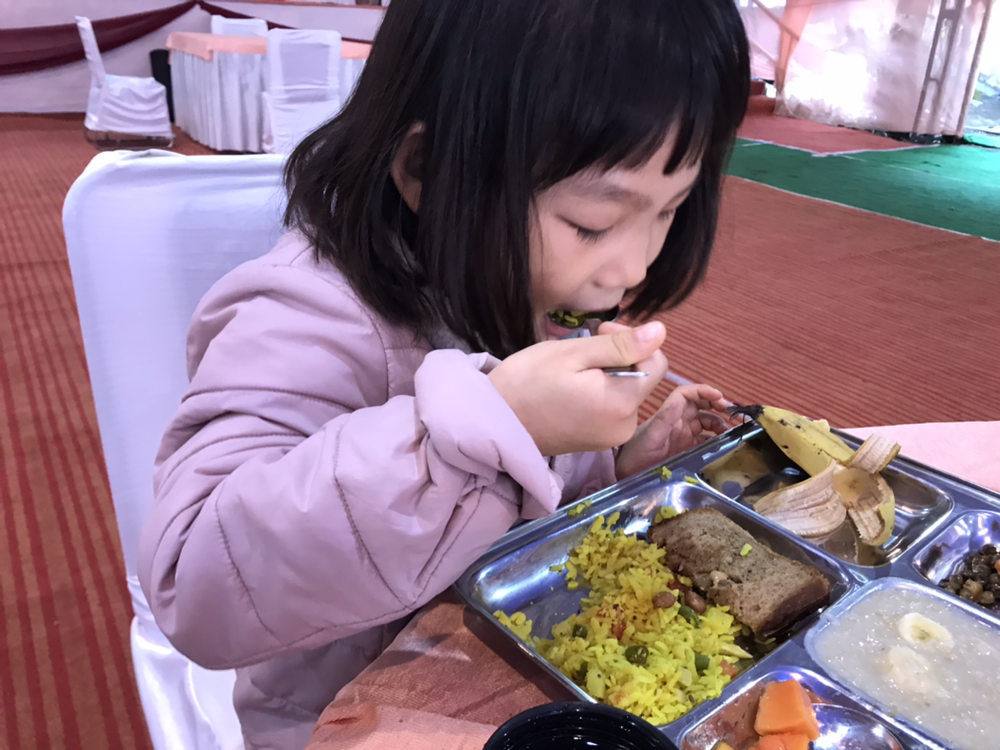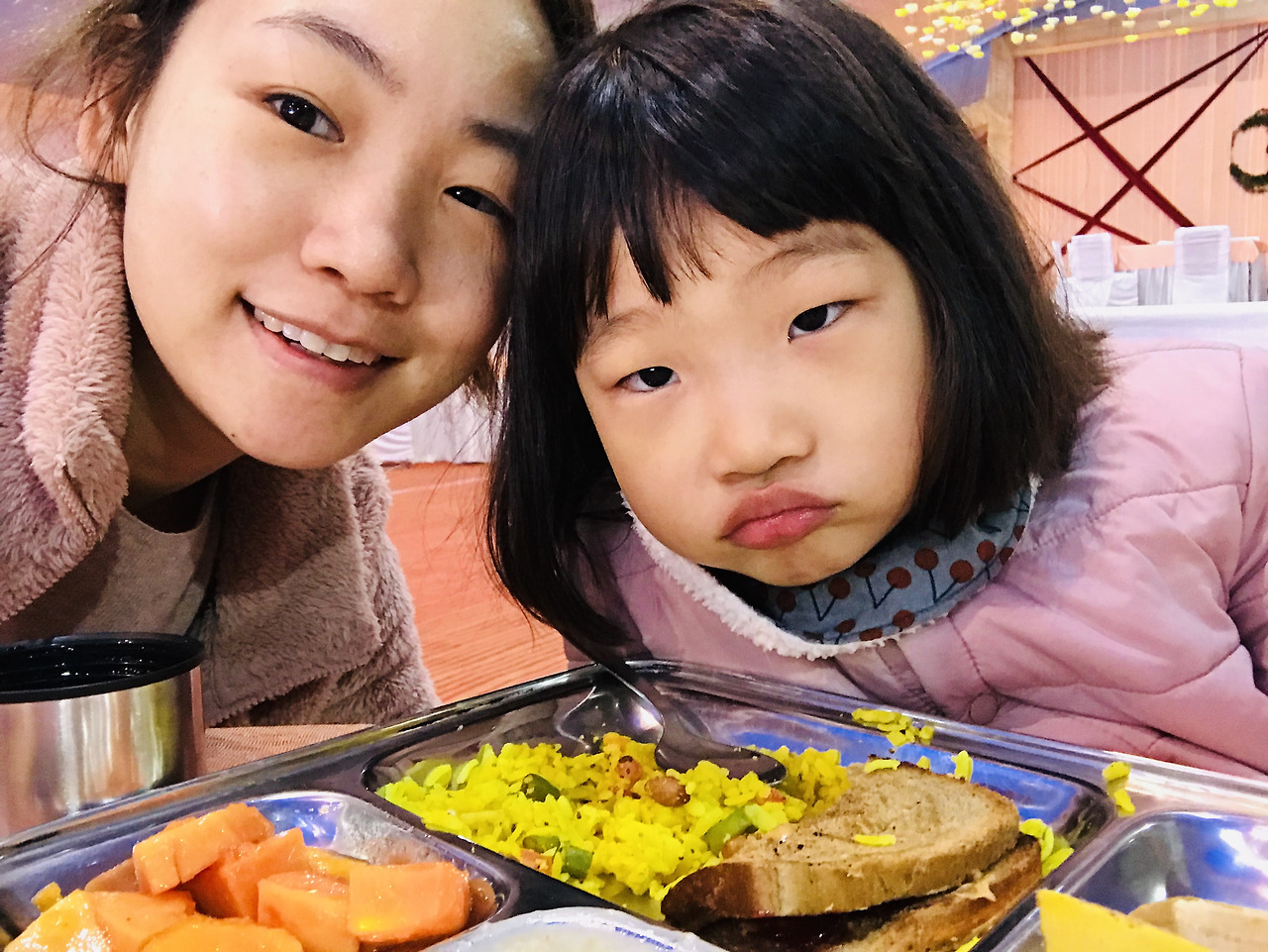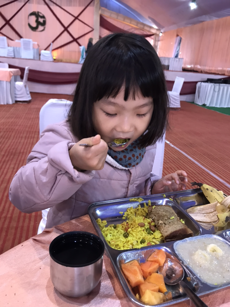3월 초의 리시케쉬는 꽤 추웠다. 아침에 눈을 뜨니 낯섦, 안도감과 같은 여러 가지 감정들이 한꺼번에 몰려왔다. 코끝에 닿는 공기는 차가웠지만 한국에서 장만해온 1인용 전기장판 덕분에 깍두기는 잘 자고 일어난 것 같았다. 정해진 식사 시간에 늦지 않기 위해 서둘러 준비를 하고 아침밥을 먹으러 Dining Tent로 갔다. 식사가 제공되는 공간을 Tent라고 불렀다.