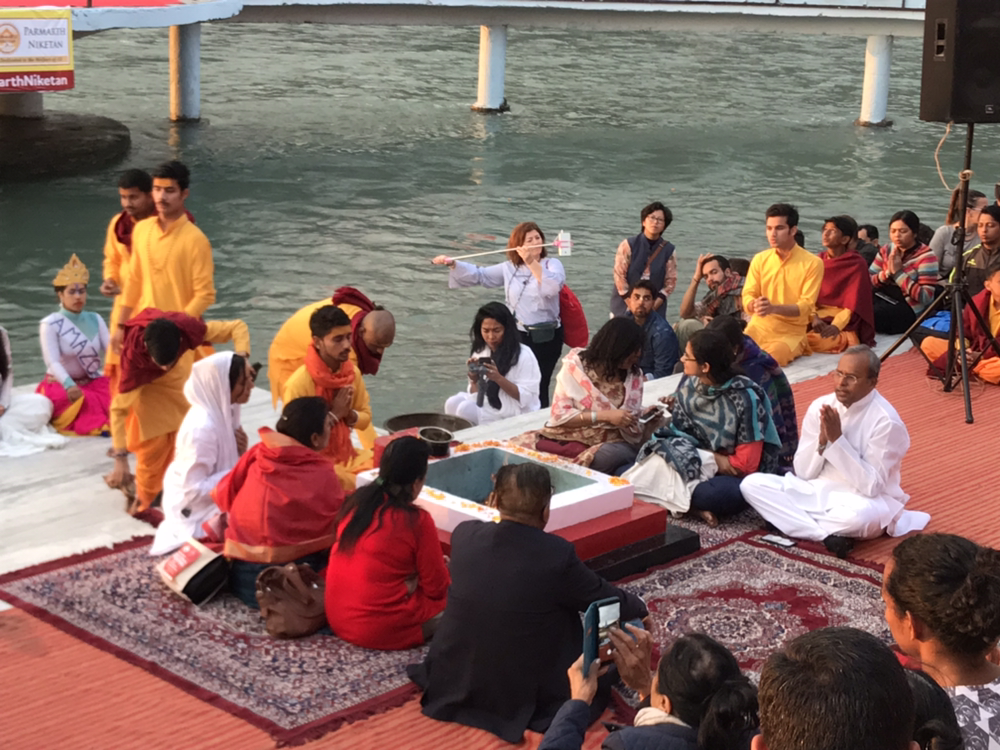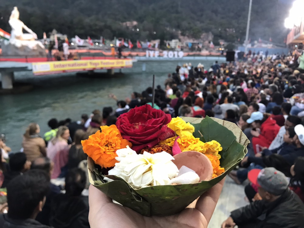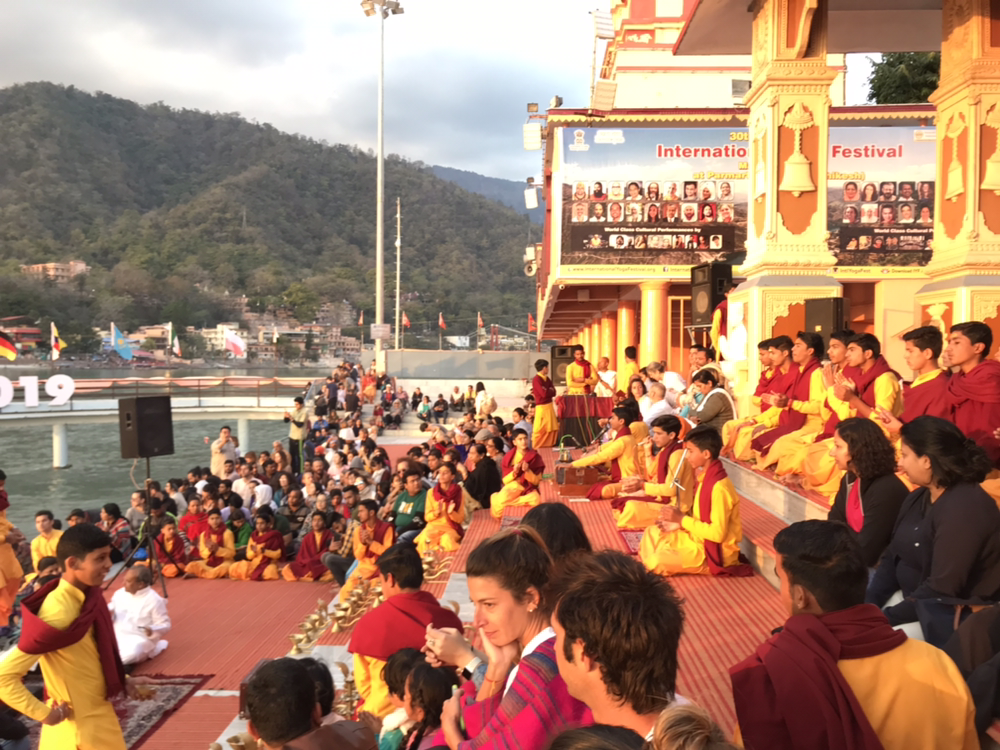 파르마뜨니케탄 국제요가페스티벌은 새벽부터 밤까지 프로그램이 이어지는데 매일 오후 5시에는 신에게 제사를 올리는 하븐(Haven)이 강가에서 진행된다. 깍두기와 하븐에 참석하기 위해서 부지런히 다시 정문 쪽으로 걸어가 자리를 잡았다.