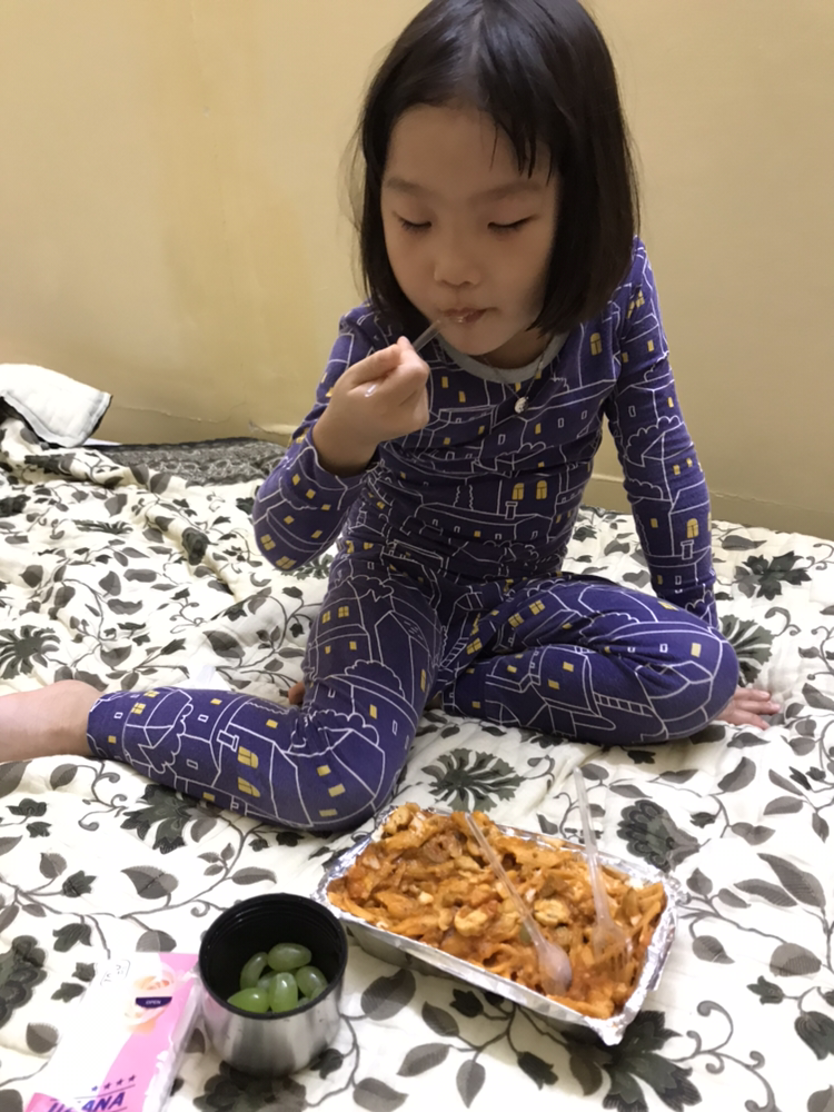이미 상당히 지친 깍두기를 데리고 저녁식사가 마련된 Tent까지 걸어가기가 힘들어서 골목길 이탈리안 식당에서 파스타 한 그릇을 포장했다. 한국에 비해 가격은 싸고 양은 많은 인도 식당들. 하나 포장하면 나랑 깍두기 둘 다 배불리 먹을 수 있었다.