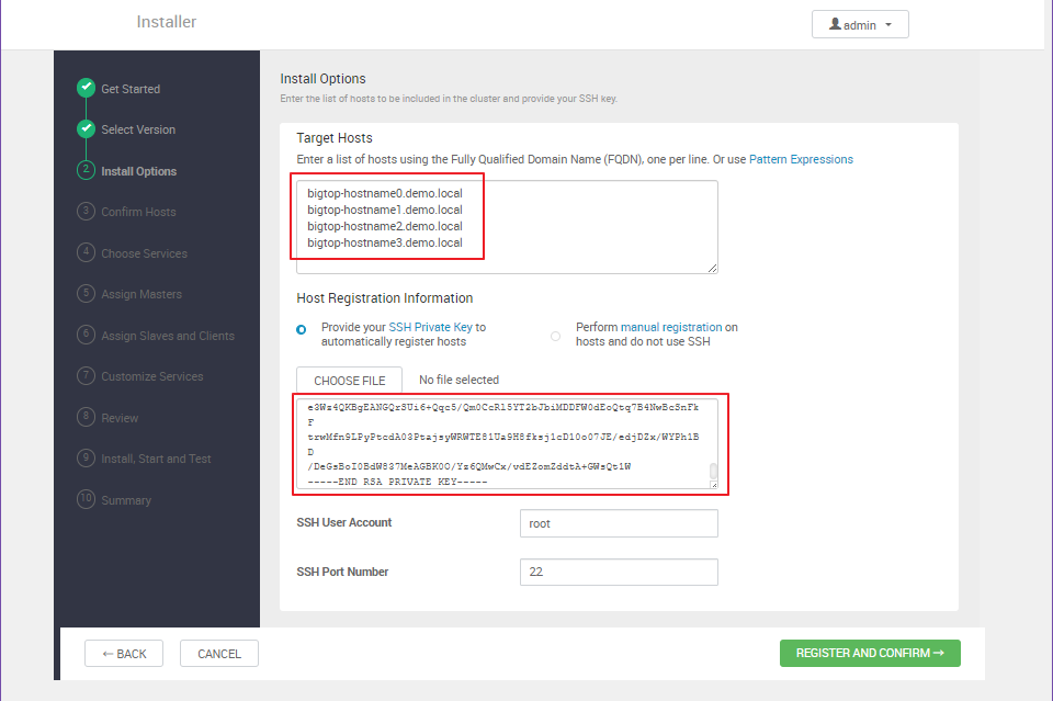 Ambari Agent 초기 구성을 위해, root 유져의 SSH 개인키 입력 1회 필요.