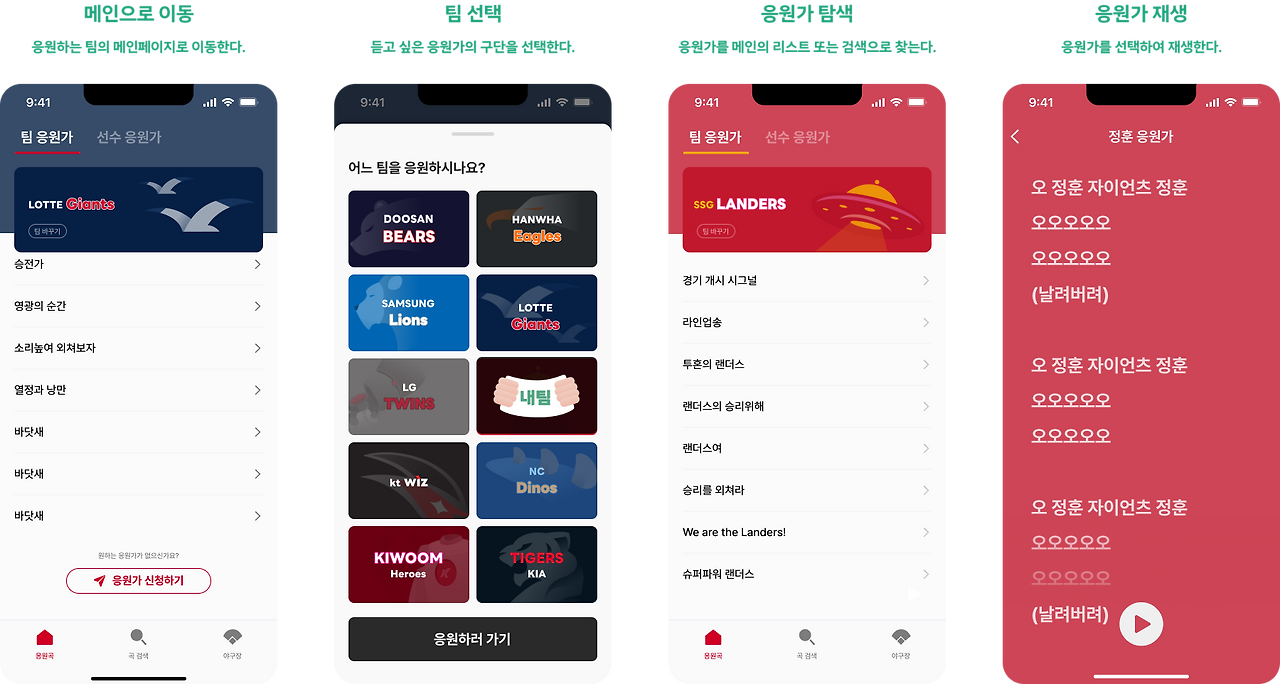 KBO 구단들의 응원가를 스트리밍 하는 앱, 모두의 야구를 만들어나가고 있는