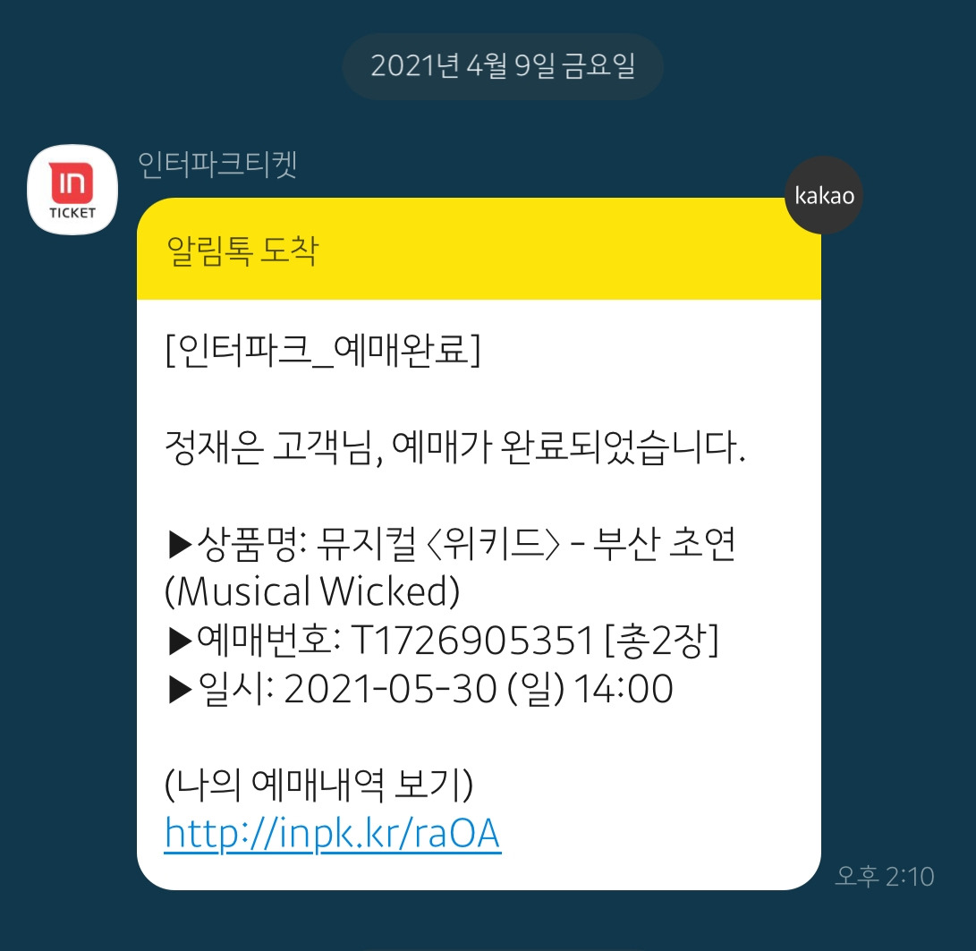 아이들도 나도 적응하기 시작했던 4월 초. 정신을 차리고 보니 첫째는 어엿한 여덟살 취학아동! 공연을 함께 볼 수 있게 됐다는 걸 깨달았다. 8세 이상 관람가 공연으로 때마침 <위키드>가 눈에 띄었다. 그러나 이미 서울 공연은 좋은 자리가 남아있지 않았다. 1층 맨 뒷줄이라도 구매해야하나 고민했는데, 부산 공연 좋은 자리를 예매하는 편이 낫다는 지인의 말에 덜컥, 부산 공연을 예매했다.