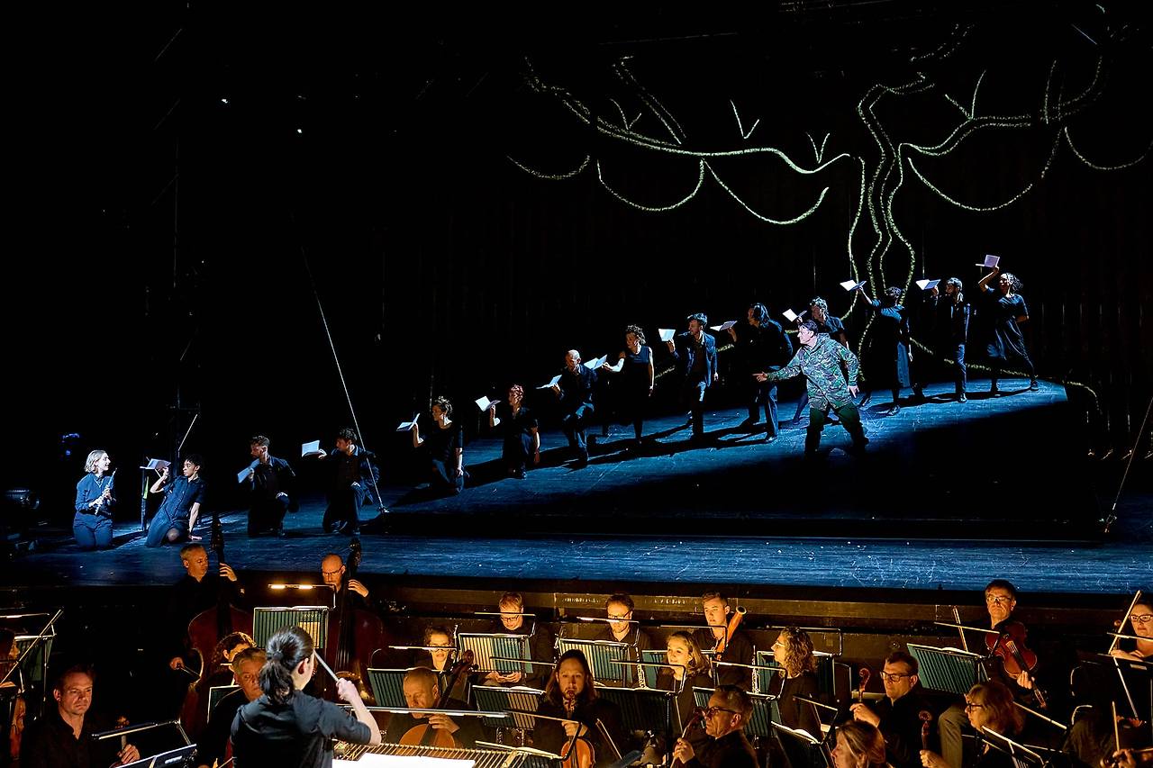 성악가들 외에도 여러 배우들이 출연했다. 악보를 반으로 접어 새가 날아가는 모습을 표현한다든지 단순하지만 임팩트 있게 소품을 사용했다. 실제 플루트 연주자 등 오케스트라 단원도 극에 자연스럽게 녹아들어 연기하며 연주하는 모습이 멋졌다.