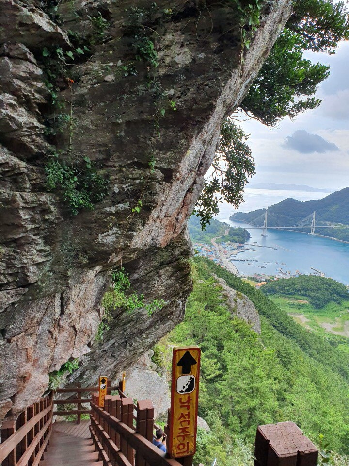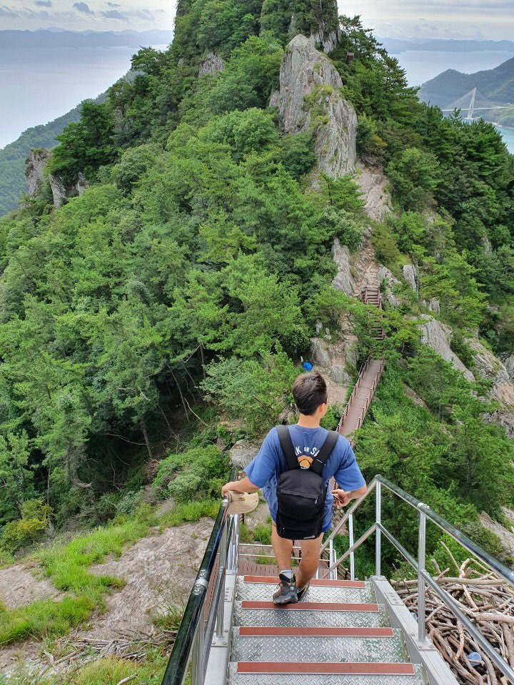 기암괴석으로 이루어진 산은 오르기가 쉽지 않았지만, 그 힘듦을 넘어서는 가치를 지니고 있었다. 해발 400m도 안 되는 산이지만 그 정상에서 바라보는 섬과 바다는 살면서 쉽게 경험할 수 없는 진귀하고 아름다운 풍경이었다. 하늘을 덮고 있는 구름과 그 사이로 세상을 비추는 태양의 빛을 포함해 풍경을 이루고 있는 모든 것이 완벽한 조화를 이루고 있었다. 4시간이 조금 넘는 산행 동안 몇 번이나 발걸음을 멈추고 풍경에 감탄했는지 모르겠다. 게다가 산을 타는 내내 구름이 태양을 가려주고 시원한 바람이 땀을 적절히 식혀주었기에 더할 나위 없는 완벽한 산행이 이어졌다. 중간중간 고지에 있는 바위에 앉아 바람을 맞으며 음악을 틀어 놓고 물과 간식을 먹었는데 그 어느 산해진미가 부럽지 않았다. 지리(망)산 위에서 보냈던 시간은 대한민국에서 보낸 가장 아름다운 시간들 중에 하나였으며 살면서 몇 번 느껴보지 못 했던 마음속 울림이었다.