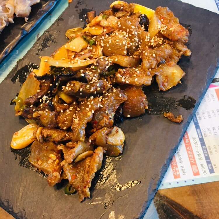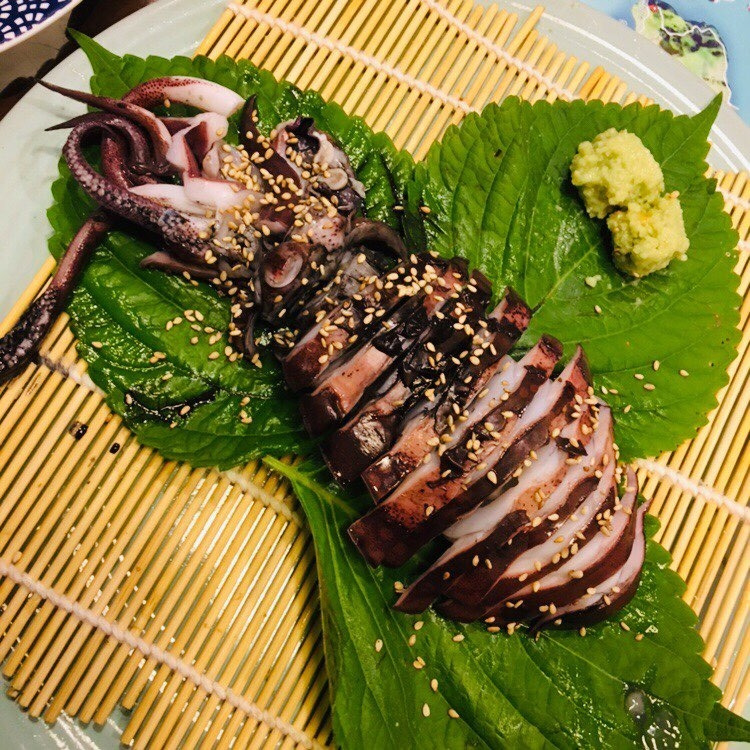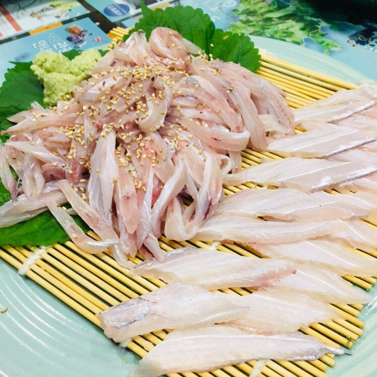 +) 무늬오징어는 회, 볶음, 튀김, 통 찜 등 여러 방법으로 먹을 수 있는데, 모두 맛있기는 했지만 이 중 최고는 단연 무늬오징어 회였다. 회로 먹을 때 무늬오징어는 부위 별로 그 맛과 식감이 조금씩 다른데, 귀 부분은 조금 더 꼬들꼬들 씹히는 맛이 있고 몸통 부분은 귀 부분보다 부드럽고 단맛이 좀 더 짙다. 바싹 구운 김에 와사비를 푼 간장을 찍어 싸서 먹으면 세상에서 가장 맛있는 회를 먹고 있다는 확신이 든다. (갈치 세꼬시도 분명 그 나름의 맛은 있었으나, 무늬오징어 회를 맛 본 뒤라서 큰 감흥이 없었다.)
