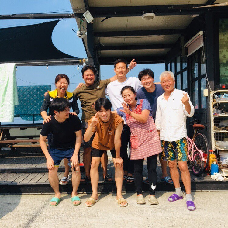 한 번은 스노클 장비와 살림망을 챙겨 바닷가로 나갔다. 형님과 나는 물놀이 겸 혹시나 주워올 것이 있으면 주워 가자는 마음으로 물속에 들어갔다. 시야가 그렇게 깨끗하지는 않았지만 우리는 운이 좋게도 문어 몇 마리와 참소라, 고동, 해삼을 조금 잡을 수 있었다. 형님에게 삼시 세 끼를 찍는 것 같다고 말하자 이런 게 섬 생활의 묘미 아니겠냐며 호탕하게 웃었다. 우리는 돌아와 고동과 소라를 삶아 그 쫀득한 식감으로 입맛을 돋우고 버너를 가져와 물을 끓여 문어를 데쳤다. 내장을 제거한 해삼과 데친 문어를 먹기 좋은 크기로 썰어 초장과 생 와사비를 푼 간장에 찍어 먹은 후 문어를 데친 물에 라면을 끓였다. 핑크색과 보라색 사이의 빛깔을 띠는 면발은 정말 추운 겨울 극한에 치달은 배고픔을 느낄 때 먹었던 라면만큼 맛있었다. 남은 국물에 밥을 말아먹으며 언제든지 서울에서도 문어와 소라, 고동, 해삼을 돈 주고 사 먹을 수 있겠지만, 분명 이 맛을 다시 느낄 수는 없을 것이라 생각했다.