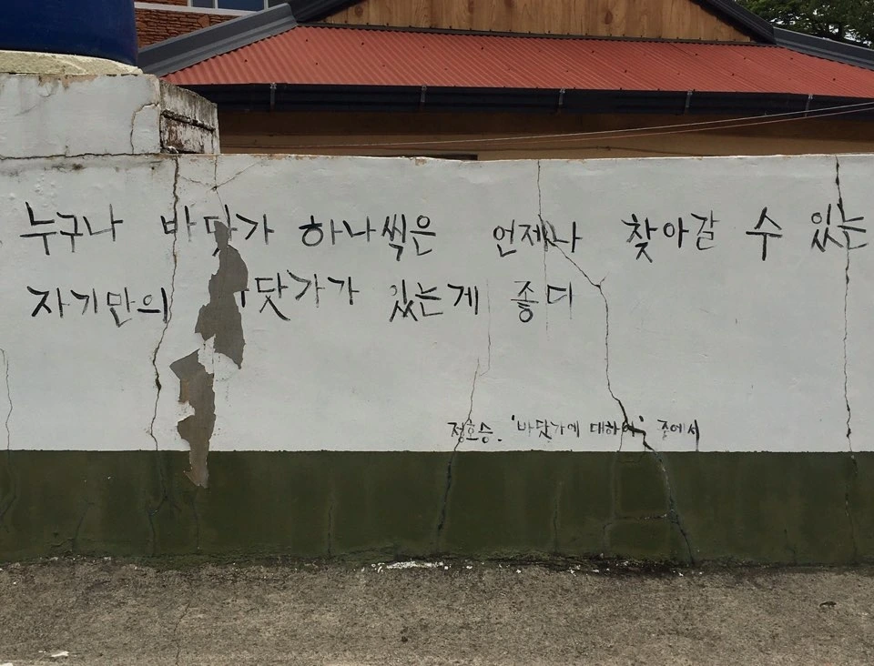 대항해수욕장을 향하는 길목에는 정호승 시인의 ‘바닷가에 대하여’란 시의 한 구절이 삐뚤삐뚤한 글씨로 적혀있다.