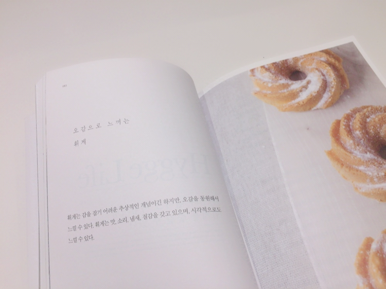포근해 보이는 담요 위로 향긋한 냄새가 나는 듯 한 홍차 한잔을 양손에 꼭 쥔 책의 표지와 '휘게'라는 낯선 단어는 이 책을 읽기에 충분한 이유가 되어주었다. 나는 책을 읽기 전이면 늘 표지 앞뒤를 꼼꼼히 읽고는 겉 장을 넘겨 저자에 대해 읽는 습관(이 밖에도 책 표지나 속지의 질감을 만져보거나 새 책에 코끝을 대고는 책장을 휘리릭 넘기며 새책 특유의 냄새를 맡는 등 여러 습관이 있지만)이 있는데, 앞표지를 넘기자 저자의 소개 대신 그 자리를 본문에 담긴 휘게의 정의가 차지하고 있었다. 사실 이 책을 읽기 전까지 '휘게(hygge)'라는 단어에 대해 들어본 적이 없었다. 어쩌면 저자는 나 같은 독자를 위해 친절하게 휘게의 뜻을 이곳에 적어두기를 원했는지도 모르겠다.