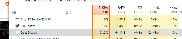 윈도우 10 환경에서 Twomon USB SE의 압승이다. CPU 점유율이 올라가지 않아 마우스 커서등이 활발히 움직이더라도 버벅이지 않고 (Duet은 서브화면뿐 아니라 실제 랩탑에서도 끊기는 현상이 나타난다) 작업이 가능하다.