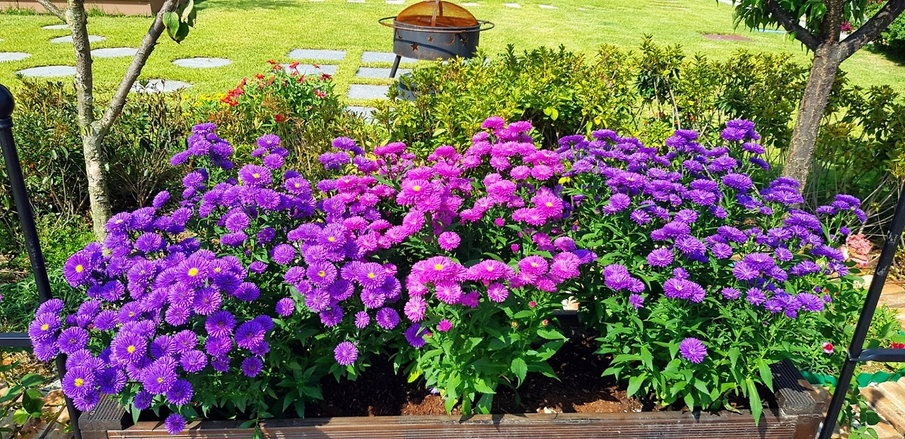 2019년 가을 꽃들이 나무화분에 심겨지고