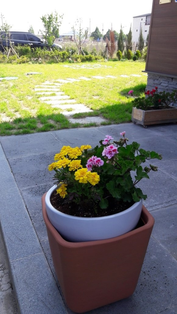 "아이고 집 짓고 마당 만드니 좋으시겠어요?"로 시작된 질문들은 짧게는 2분 길게는 10분이 넘는 대화로 이어지기 일쑤였다. 여자분들은 주로 마당 가꾸기가 힘들지 않냐? 하고 남자분들은 마당이 있으니 건강에도 좋고 참 좋겠다 부러워하셨다. 부부가 함께 묻는 경우는 남편은 집을 짓고 싶은 의사를, 여자분은 내가 마당일 까지 해야 쓰겠냐며 그 짧은 대화에도 견해 차이가 스스럼없이 보였었다. 남자분들은 사모님이 일을 하시니 남편분이 얼마나 좋아요! 하고 여자분들은 벌레가 많아서 할만하세요? 했다. 집을 짓자고 한 것도 마당에 잔디를 식재하자고 한 것도 나니 나는 그냥 웃었다. 잔디나 꽃도 나무도 다 생명인데 내가 조금 거들뿐 그들은 그들의 생명을 유지할 뿐인데 내가 엄청 정성 들여 키우듯 생각하는 것이 조금 놀라웠다.