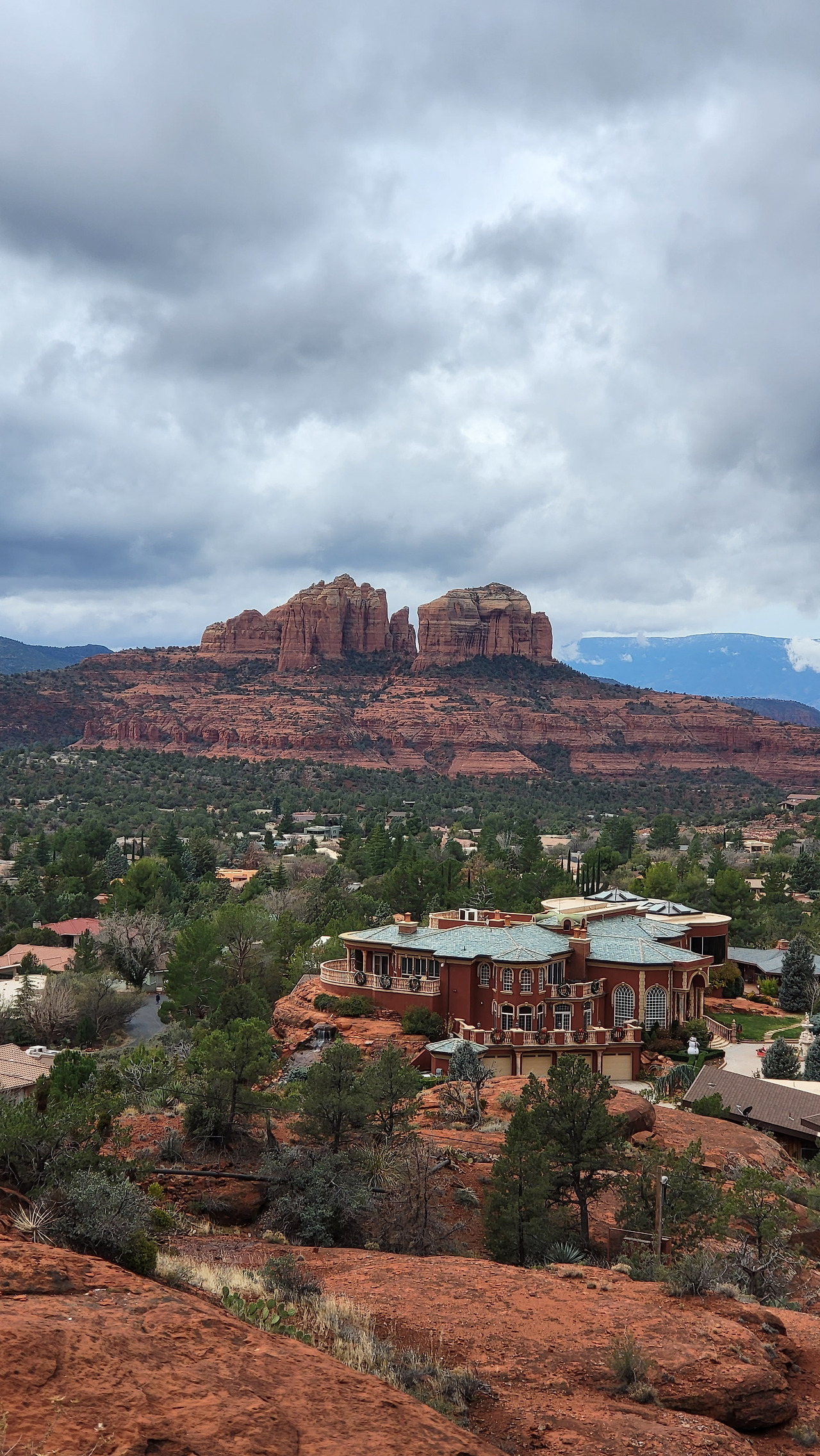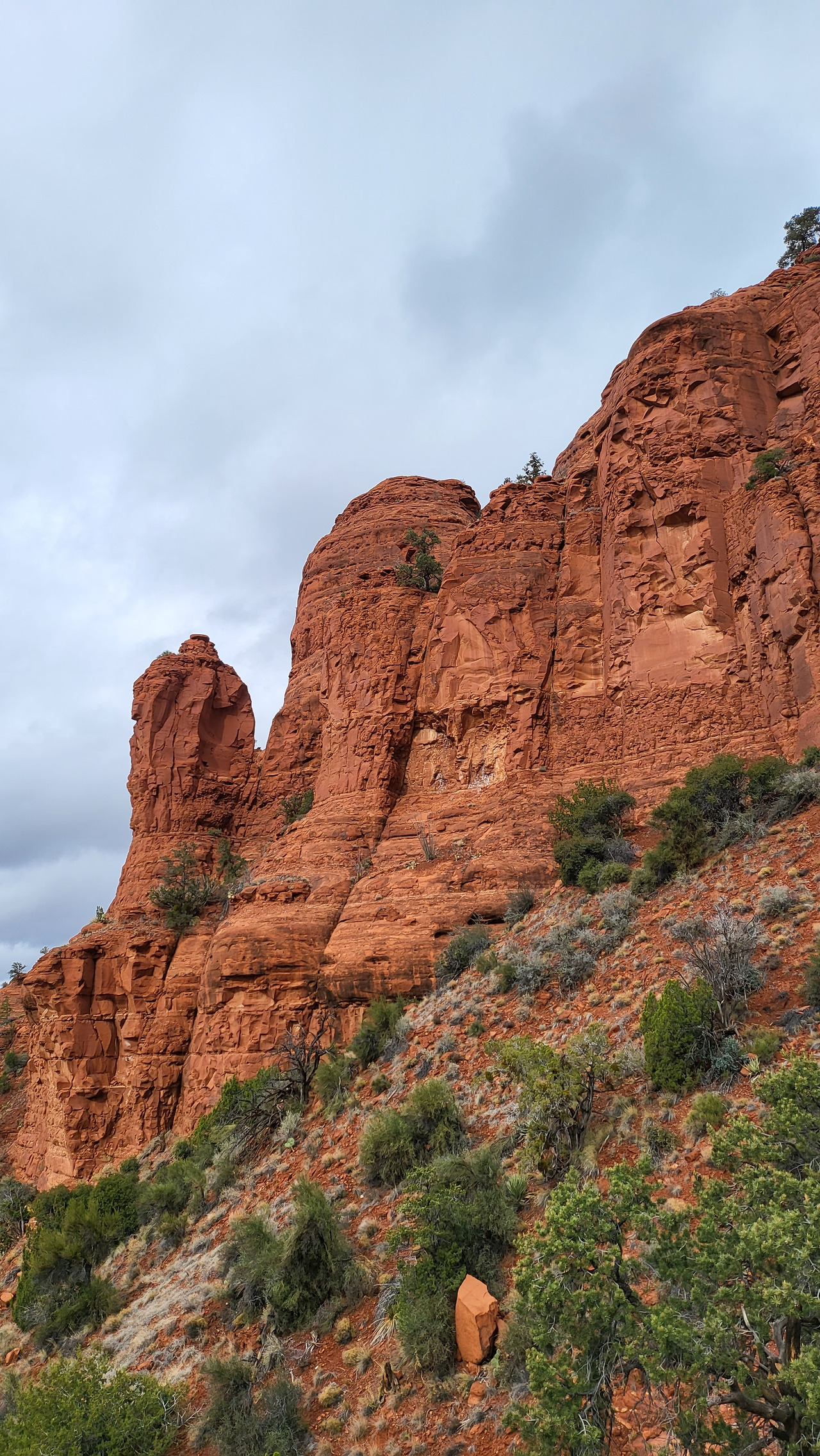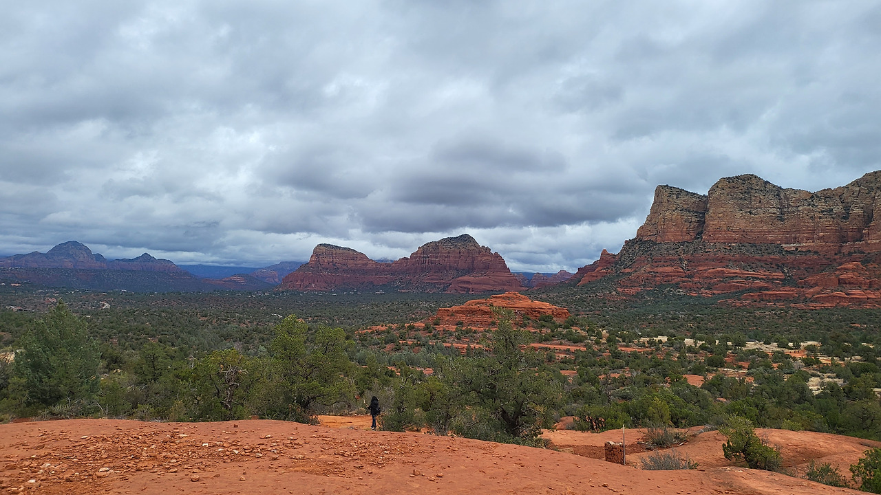 성당을 나와 에어포트 메사(Airport Mesa)로 향했다. 날이 싸늘했다. 에어포트 메사에 도착해 짧은 트레킹 코스를 걷자 하니 두 아이들이 흔쾌히 나섰다. 많은 가족들이, 연인들이 트레킹을 하고 있었다. 미국인들은 모두 노 마스크였다. 한 사람이 걸을 수 있는 좁은 길을 마주 오는 여행객과 스쳐 지나가며 오미크론에 감여 되지 않기를 기도했다. 구름이 낮고 두텁게 깔려 을씨년스러운 분위기였지만 30분 걸으니 땀이 났다. 전망대에 올라 시원한 풍광을 보며 아이들과 사진을 찍었다. 아름다운 바위산도 드넓은 대지도 참 부러웠다. 국토가 작아 오밀조밀 모여 살며 안달복달하지 않아도 되니 말이다.