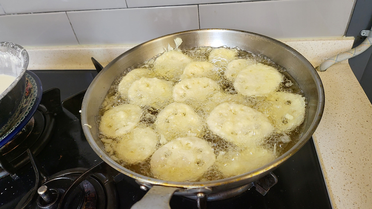 설이던 추석이던 요리가 힘들지 않은 것은 아이들과 웃고 떠들며 함께 했기 때문이다. 가끔 남편이 집에 있던 때는 더 시끄럽고 더 요란한 웃음소리가 나니 힘은 들어도 즐거운 명절 음식 준비이다. 그런데 이번 설은 조용했다. 일요일 오전 아침 일찍 남편이 출근한 후 튀김 거리를 준비해 종일 튀김을 했다. 허리가 아팠다. 함께 웃을 아이들이 없으니 더 아팠다. 월요일 오전엔 전을 부쳤다. 동태전과 동그랑땡만 했다. 오후엔 시댁에서 먹을 저녁장을 봐서 올라가야 하니 말이다. 남편이 전 부치는 식탁에 앉아 하품을 했다. 피곤이 가시지 않은 남편과 동태전을 부쳐 한입씩 나눠 먹고 서로 배시시 웃었다. 남편이 "조금만 하지 뭘 이렇게 많이 했어?" 하기에 "딸을 줘야지. 지난 추석 전과 튀김을 엄청 맛나게 먹었다고 하더라고" 하니 남편은 "그래? 그럼 넉넉히 줘야겠네" 했다. 늘 시댁에 싸들고 갔던 전과 튀김이었는데 이젠 딸까지 챙겨야 하니... 한동안은 넉넉한 냉동식품 만들기를 할 듯하다.