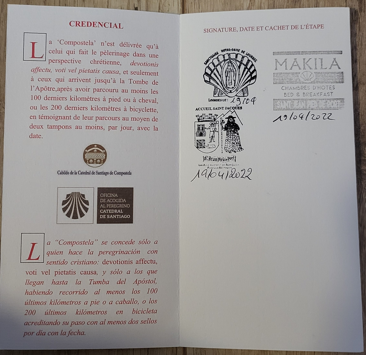 순례자 여권인 크레덴샬을 만들고 스탬프를 받았는데 그게 뭐라고 참 좋다. 도화지 같이 뻣뻣한 종이에 날마다 알베르게에서 스탬프를 받는 것이 하루의 중요한 마침 일과가 될 것이라는 사실이 좋았다. 단순한 삶에 들어섰음을 깨닫게 했다. 성장하는 것이 일이었던 어린아이처럼 하루 종일 걷고 도장 하나를 받는 것이 하루 일과의 전부가 되는 날.. 그런 35일이 시작되어서 좋았다.