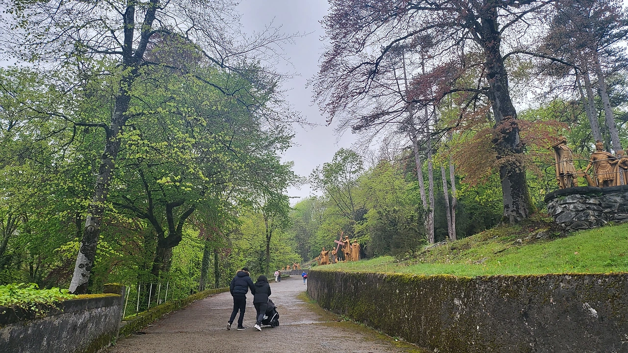 태어남에 어떤 죄가 개입될 수 있을까? 부모의 죄가 자식에게 이어진다는 것이 논리적으로 합당한가? 비 오는 루드르에서 십자가의 길을 걸으며 죄를 생각지 않을 수 없었다. 진정한 인간의 삶과 종교는 무엇일까? 죄의 대물림은 삼위일체 신성을 완성하기 위해 종교적 논리를 세우고 다지는 과정에서 만들어진 것은 아닐까 하고 말이다. 비가 주룩주룩 오는 동안 루드르의 샘물을 물통에 담고, 동굴 속 샘물이 흐르는 곳의 동영상도 찍고, 고래뱃속 같은 지하 성당도 들어가며 진정 신은 원죄를 등에 짊어지고 사는 인간을 보며 흡족할까 하는 생각이 들었다.