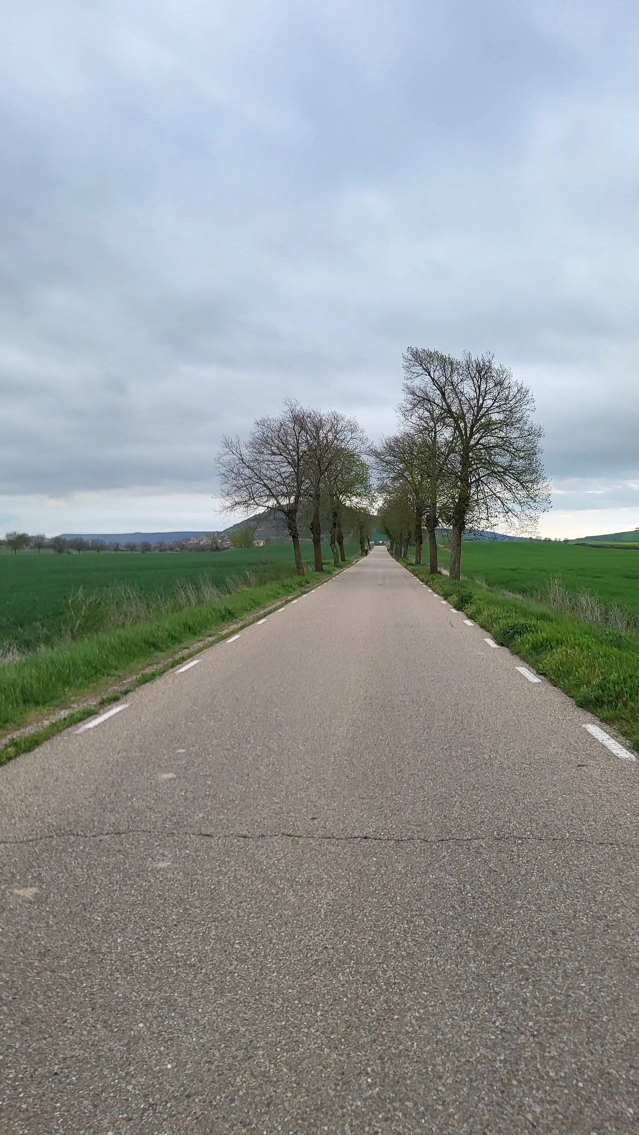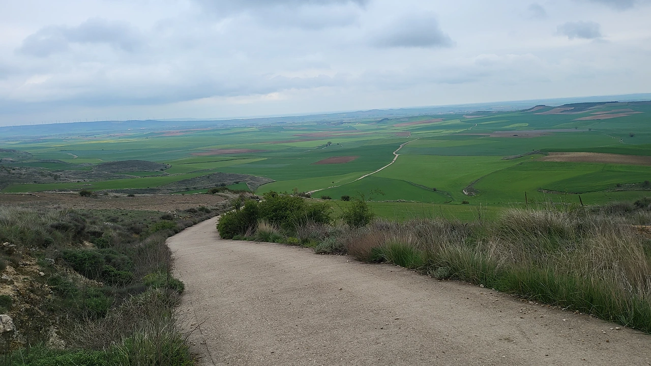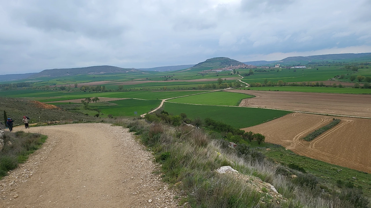 날이 밝기도 전에 출발한 아침길... 구름이 가득하다. 날은 밝았지만 낮고 두터운 구름이 뒤를 따랐다. 긴 길이 펼쳐졌다. 작은 언덕을 넘으니 눈 아래 긴 길 위에 순례자들이 개미처럼 걷고 있다.