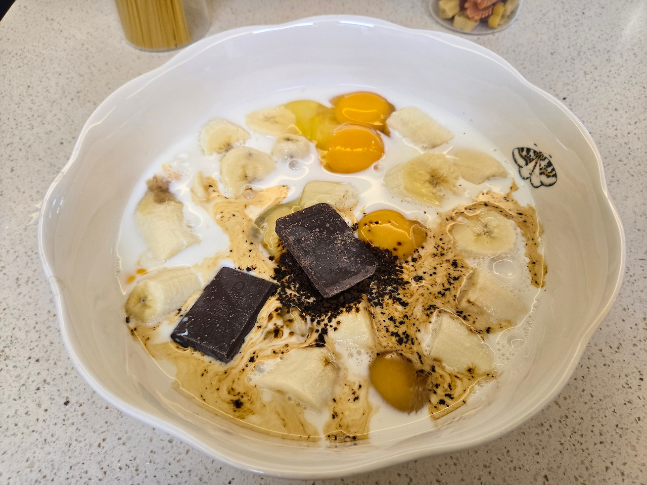 실실 웃으며 나를 따라와 밀가루며 이스트, 우유, 견과류를 사는 남편이