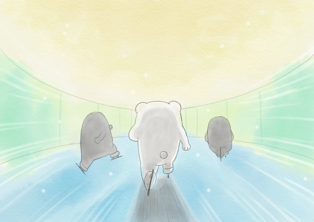 딸은 6학년이 끝날 때까지 땀이 범벅이 되고, 토할 것 같은 장장 세 시간의 훈련을 무사히 마치고, 남동생이 가느다란 다리로 스케이트화를 신는 것을 보며, 고생을 시작하는 동생을 안쓰럽게 바라봤다.