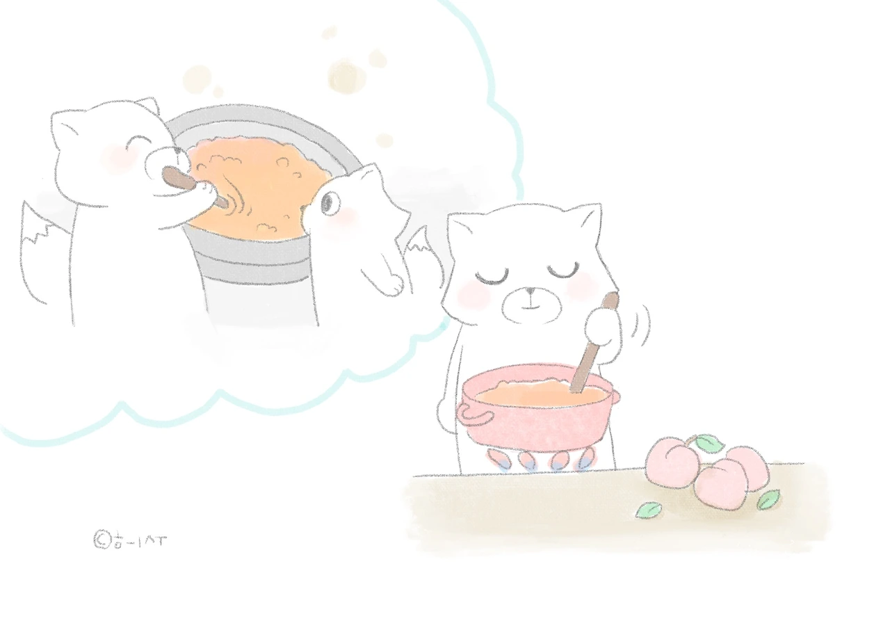 집안에 불을 지피고 설겅설겅 대충 자른 복숭아를 냄비에 넣고 한숨 끓였다. 단내가 솔솔 났다. 도깨비방망이로 숨 넘어간 복숭아를 살살 휘저으니 복숭아는 사르르 사르르 잘도 갈렸다. 정말 도깨비방망이구나!복숭아 모양이 사라지니 추억속 사과가 달려왔다. 사과를 쥐고 강판에 쓱쓱 문지르던 열살 작은 내 손과 마흔 넷 엄마의 큰 손이 복숭아 향을 타고 왔다. 설탕을 1:1 비율로 넣고 센 불로 끓이다, 중불로 끓이고, 약불로 졸이니 덥석 엄마와 만들던 사과잼 생각이 났다. 복숭아잼 만들다 웬 사과잼 생각!