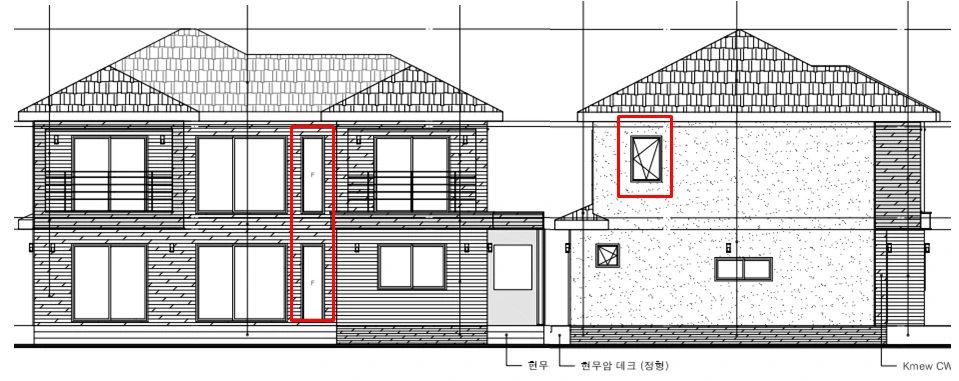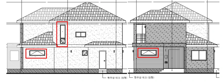 빨간색으로 표시된 창은 모두 내가 바득바득 우겨서 넣은 창들이고 창문의 크기는 넣을 수 있는 최대 넓이였다. 없던 창을 만들면 남편은 "그걸 왜?" 했고 있던 창도 "너무 크네. 줄이면 어떨까?" 했지만 보다 못한 디자이너가 내 손을 들어줬다. "창이 많으면 자재비도 더 들고 보온에 영향 있을 것이라 생각하시지만요. 건축주님! 군산은 추운 지역이 아닙니다. 군산은 평균기온이 대체로 높은 곳이라 창문도 비싼 것을 달지 않아도 되고 이중창으로 하지 않으셔도 되고요. 채광이 좋으면 겨울 보온에 유리하고 집이 환하니 나쁘지 않습니다. 사모님 건의대로 하셔도 무방할 것 같아요." 했다. 남편은 집의 큰 그림이 자신이 원하는 구조임으로 결국 창의 모양과 개수는 내게 양보했다.