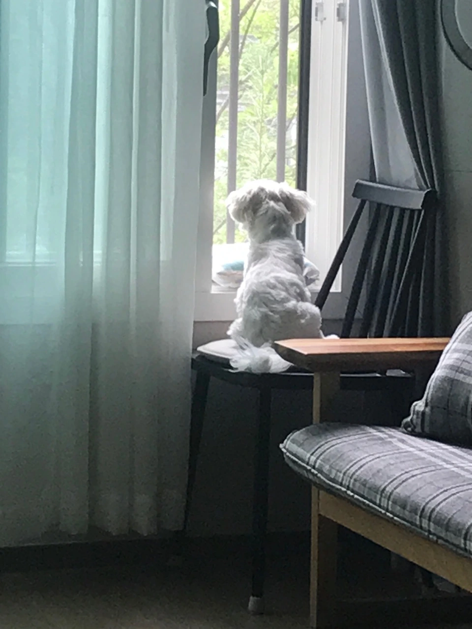 우리 집 막내로 심각한 귀여움을 담당하고 있는 몰티즈 '사과'의 취미는 시시때때로 창밖을 구경하는 것이다. 하루에 최소 한번, 많게는 서너 번도 산책을 하는 녀석이 계속 창밖을 구경하는 것에는 어떤 이유가 있어서인지 좀 궁금하지만 그저 강아지 자신의 사생활이려니 하고 이해하고 존중해 주는 것이 우리 반려인의 할 일이다.