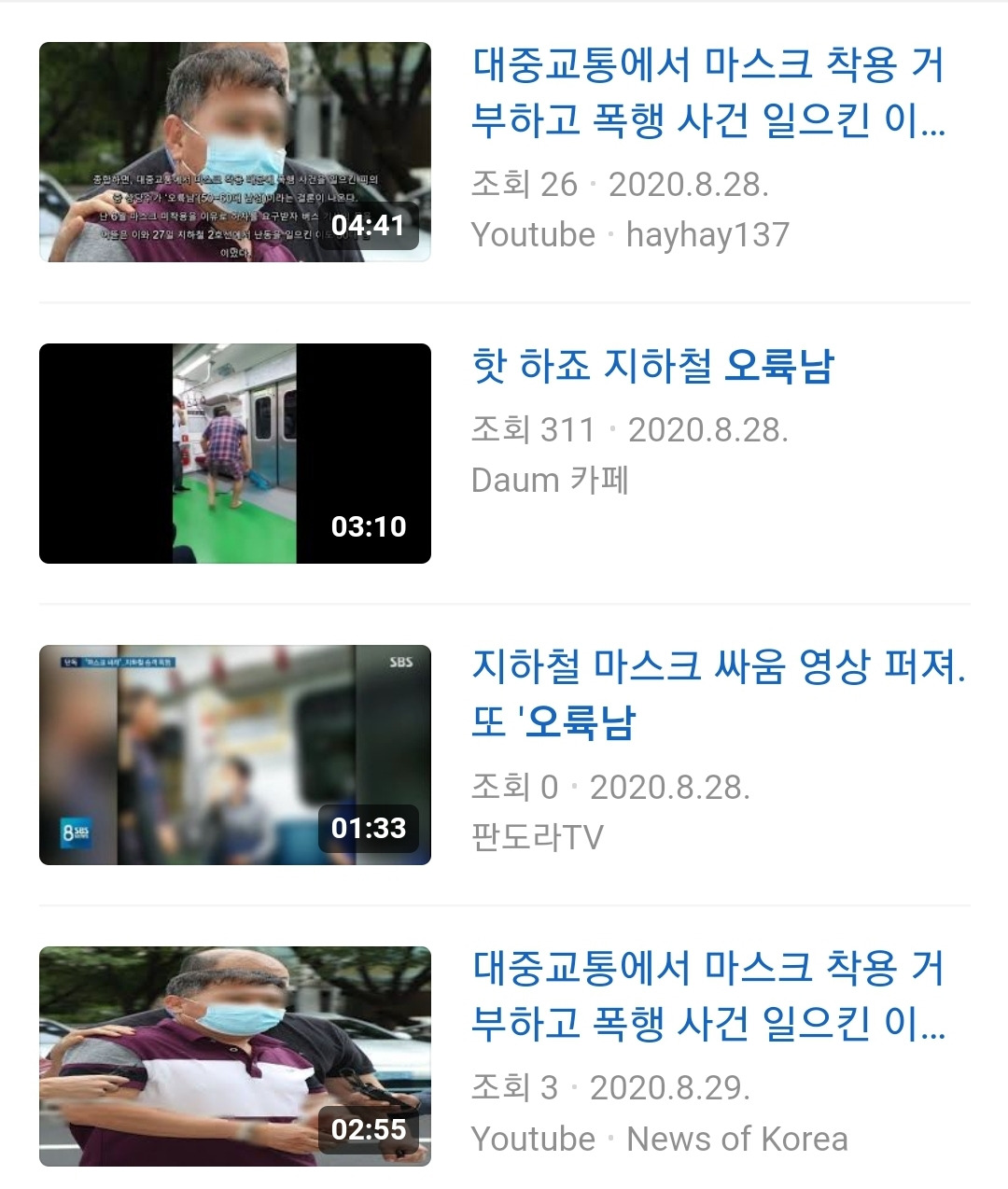 영상의 주인공은 요즘 한창 뜨고 있는 오륙남이었고 뉴스에도 보도가 되어 시끌시끌했던 '마스크 쓰지 않은 50대 남성의 폭행 장면'이었다.