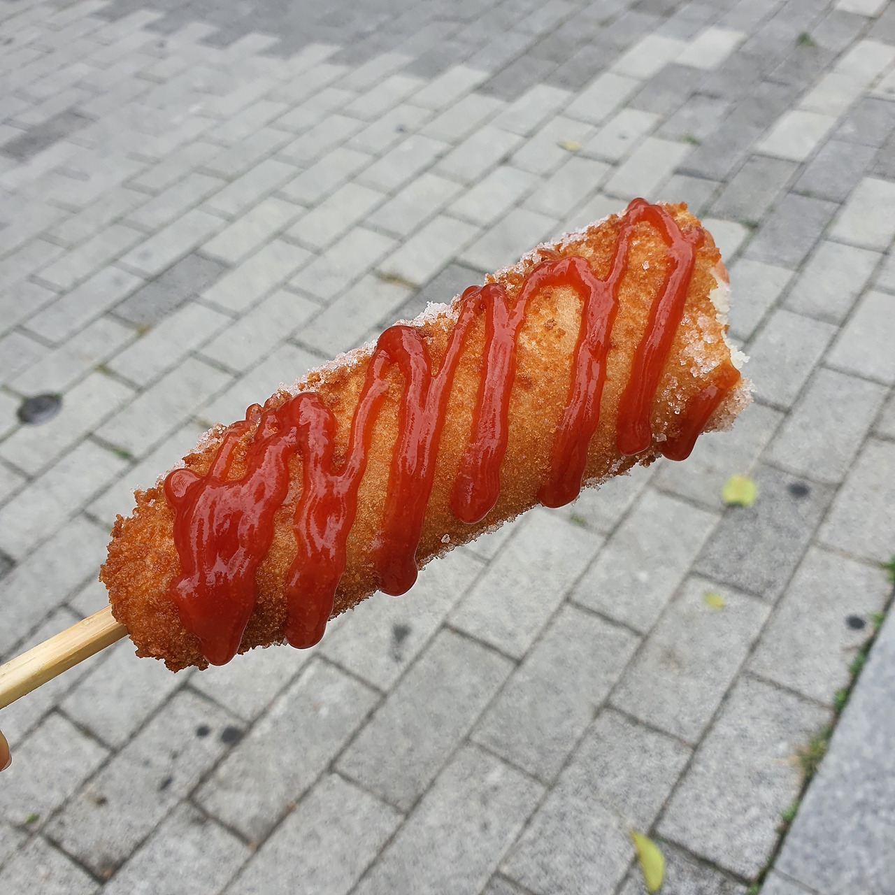 한 번은 집 앞을 지나가는데 동네에 프랜차이즈 핫도그 가게가 새로 생긴 것을 보았다. 천 원이면 그 추억의 핫도그를 먹을 수 있으니 참 반갑기도 반가웠다. 언제 시간이 나면 저걸 먹어볼까 궁리를 하던 차에 마침 평일 오전 연차를 쓰고 우체국에 볼일을 본 뒤 돌아오다 시간이 남은 나는 핫도그를 먹으러 갔다.