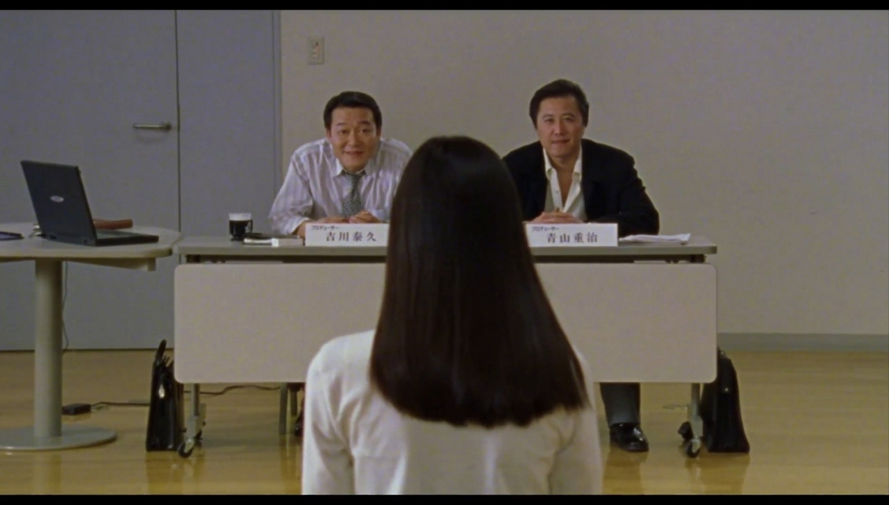 오디션이라는 것은 그 자체로서 불균형의 현장이다. 서류를 넘겨가며 면접관은 일상적이거나 때론 무례한 질문을 던지기도 하고, 해당 면접자에 대한 궁금증이 끝나면 '다음'을 외친다. 그 와중에 면접을 보러 온 사람들은 각자의 이유로 필사적이고 간절하다. 그 오디션장 특유의 필연적인 불편감과 치우친 균형감에 처음으로 미세한 균열을 내며 여주인공이 등장한다. '오디션'에서 까지는 여주인공이 권력관계에서 뭔가 열위처럼 보인다. 하지만 분명 조신하고 청초한 그녀는 의미심장한 아우라가 있다.
