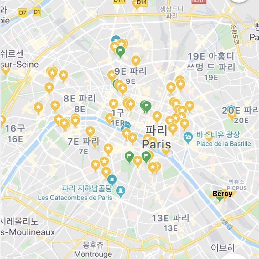 K의 꿈속 세월이 고스란히 담긴 파리에서 그가 느끼게 될 행복을 더 오래 더 크게 늘려주고 싶다. 그러려면 시간이 빠듯하다. 가고 싶은 곳과 가야 할 곳을 표시해둔 구글 맵은 이미 별천지다. 벌써 저녁 9시가 다 되어가지만 숙소 앞 베르시 빌라주(Bercy Village) 정도는 구경해 주어야 한다는 생각에 얼른 캐리어 두 개와 나의 엄마를 RER에 싣는다.