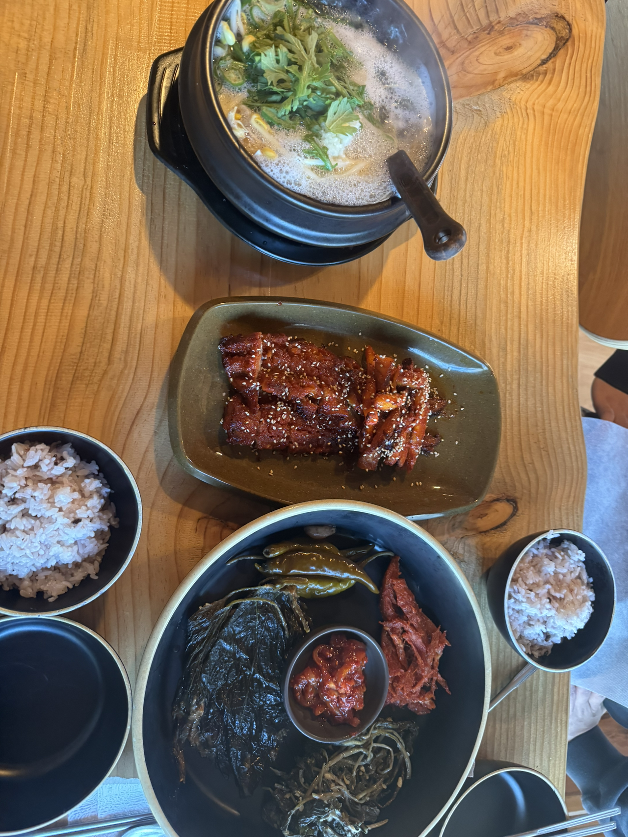 매번 포케, 샐러드, 요거트로 끼니를 때우는 내가, 미역국을 쓱싹 헤치우고, 생선까지 열심히 발라먹으면서 한공기를 뚝딱 먹는다니. 스스로가 대견했다. 미역국은 청국장 맛과 함께 미역이 신선했다. 생선구이는 노릇노릇하게 구워서 비린내는 안나면서 생선살이 바삭한 것이 이전에는 먹어보지 못한 느낌이었다. 맛 표현도 서툴고 음식에도 일가견이 없는 나였지만, 아무말 없이 음식을 먹은 것을 보면 여기는 정말 훌륭함그자체였다.