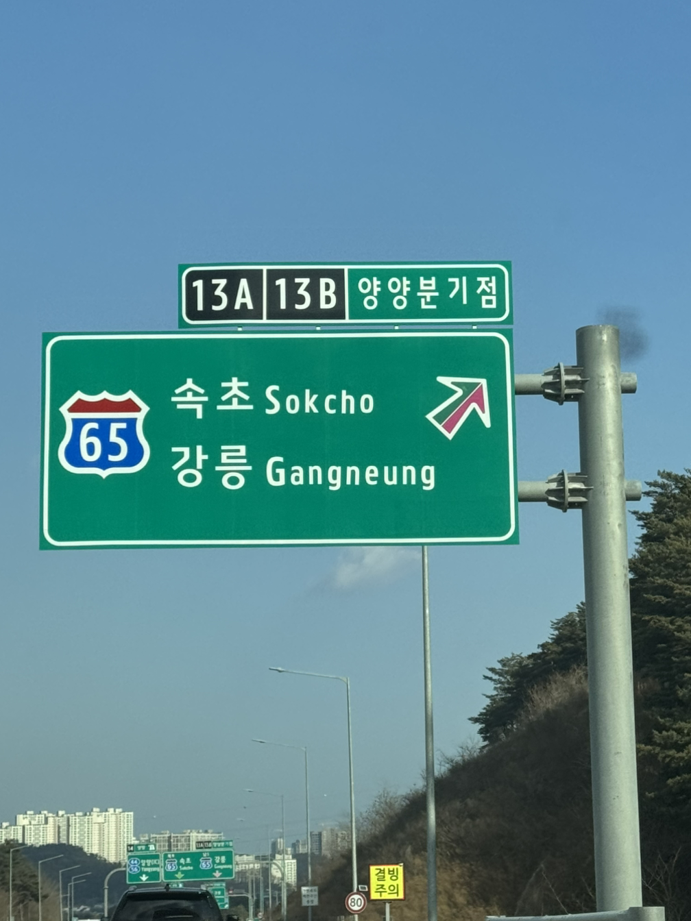 서울에서 속초는 약 2시간 반 정도 걸린다. 속초로 향하는 길은 뻥 뚫였고, 반대편 도로는 서울로 돌아가는 차량들은 멈춰있다. 우리가 빠르게 달리고 있다는 것은 주변 차량들이 뒤로 밀림으로써 인식할 수 있었다.