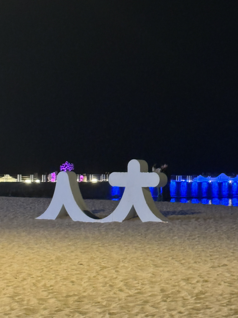 초성으로 세워진 조각물(ㅅㅊ)을 보고 초성게임을 하면서도 까르르했고, 폭죽이 불법임에도 불구하고 밤하늘에 터지는 것을 보면서도 감탄을 하였다. 바닷길을 터 놓은 길을 따라 가면서 반짝거리는 별들을 보았는데 삼태성(별 3개가 나란히 있는 것)을 보고 오리온자리도 찾았다. 어렸을 때, 대전 천문대에서 친구들이랑 천문 망원경으로 봤던 별들이 새록새록 생각나는 듯하였다.