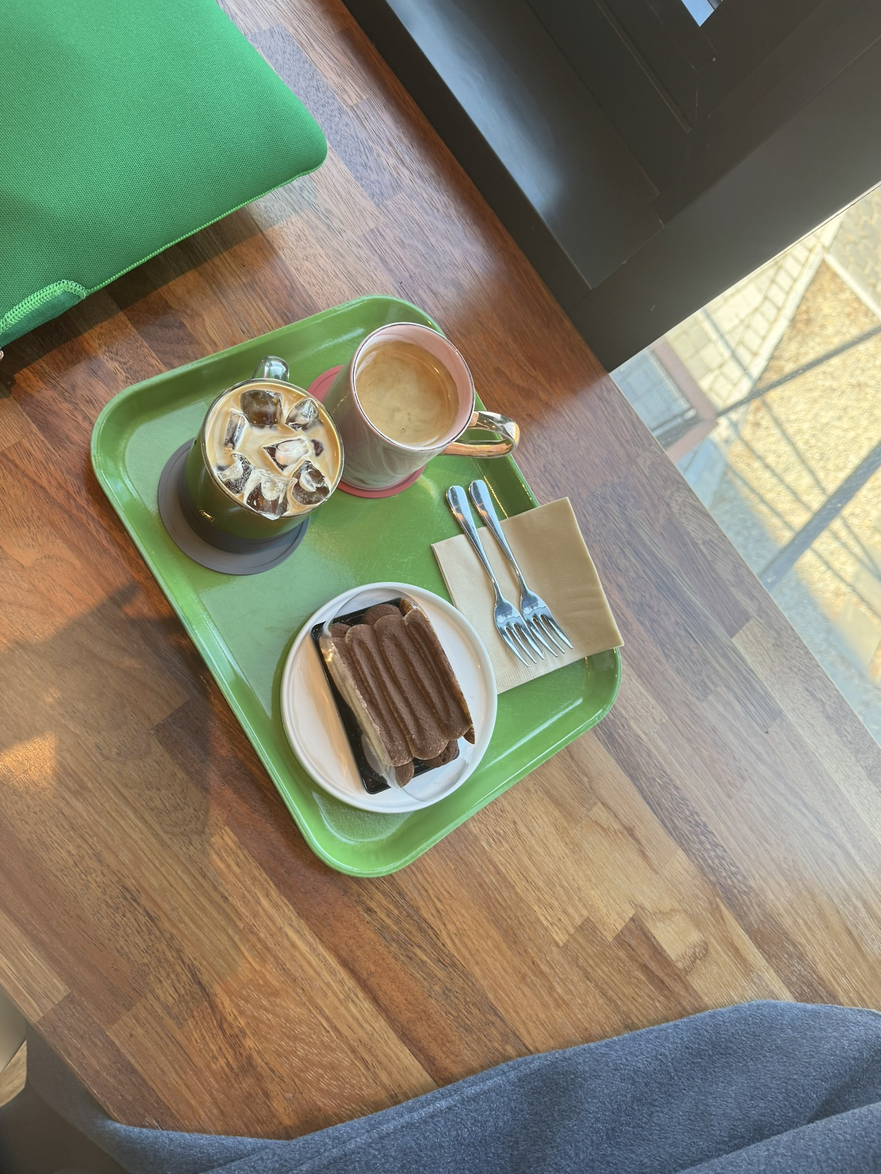 다음 일정으로 인해서 오랜 시간 머물지 못했는데, 아직도 그 카페에서 울렸던 클래식이 귀에서 멤돌았다. 그만큼 옆사람 목소리보다 카페 전체에 울려퍼지는 그 음악에 모든 것을 맞추면서 겨울산의 웅장감을 체감하고, 아점을 먹고 난 후의 평온함과 안정감을 만끽하게 되었다. 티라미수 케익은 내 취향은 아니었지만, 아이스 아메리카노는 향이 짙고 부드러워서 한 모금 할 때마다, 시원해지는 느낌이었다.