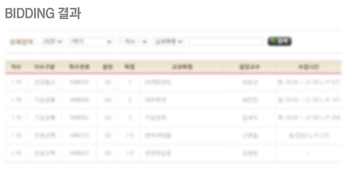 수강신청은 1차, 2차 비딩과 일반수강신청(선착순) 이렇게 구분이 된다.