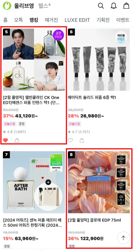 향수를 뿌리고 상대방의 반응(감탄하거나, 황홀해하는 등) 혹은 향수에 대한 시각적인 정보(세일, 잘생긴/예쁜 모델들이 자주 사용한다 등) 혹은 데일리로 매일 내가 즐겨찾는 제품이라는 일상 속에 녹이기(화장대에 여러 화장품들 사이에서 보여지는 등) ..