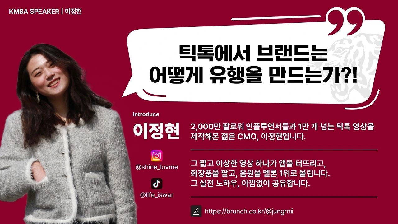 나는 이 발표를 잘하는 게 목표가 아니었다. 어떻게하면 '남과 다를까'가 핵심이었다. 즉, 내가 발표를 준비하면서 스스로에게 질문했던 시간들에 내가 가진 무기는 '색다른 경험'이었다. '틱톡' + '크리에이터(인플루언서)' + '30살'. 가장 빠르게 A/B 테스트를 하면서 틱톡에서 가설 검증을 하였고, 모두가 외면하는 플랫폼에 말그대로 5-6년 전부터 몰빵을 하였다. 강연장에 온 모든 분들께 그걸 들려주는 것이 나의 경쟁력이었다.