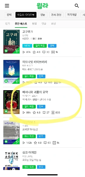 - 대표적인 윌라 시그니처 오디오북 ; 매트 헤이그 <미드나잇 라이브러리>, 베르나르 베르베르 <죽음> / <파피용> 등
