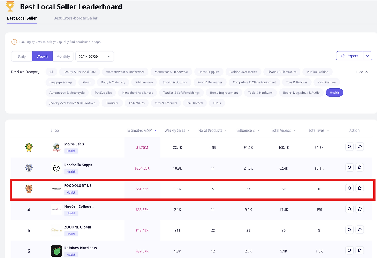 틱톡샵 내 80건의 영상으로 주간차트 3위