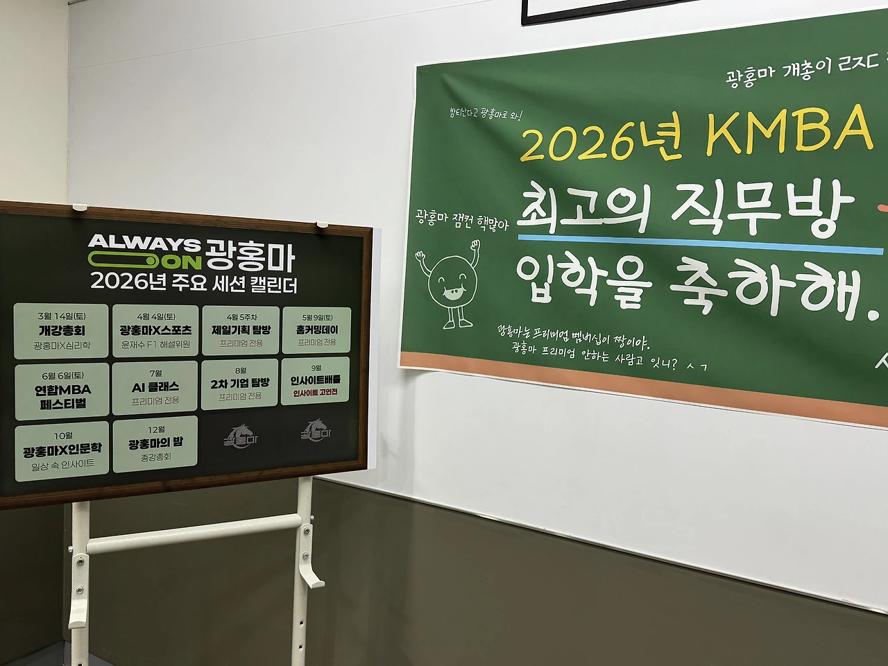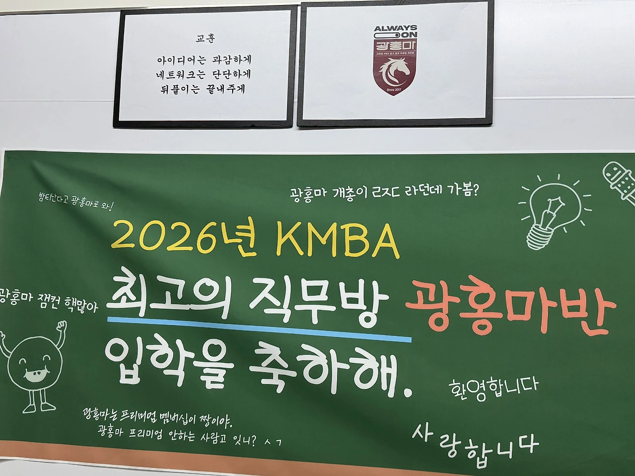 작년에 고려대학교 경영전문대학원(이하 고려대KMBA)에 처음 입학했을 때가 생각난다. 설렘반 긴장반으로 어색해하면서, 모든 게 조심스럽고 낯설었던 때였다. 어느덧 벌써 1년이 지나, 이제는 신입생 26학번을 맞이하는 입장이 되었다.