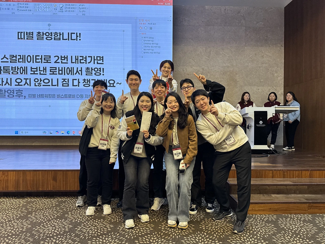 행사 시간이 점점 다가왔고, 전체 홀이 수백 명의 26학번 신입생분들로 채워지면서 리허설 때는 못 느꼈던 긴장감이 밀려왔다. 한편으로는 눈을 반짝이며 앉아계시면서, 멀리서 응원해주시는 모습을 보니 작년의 내 모습이 떠올랐다. 그때의 설렘이 얼마나 컸는지 아직도 기억난다.