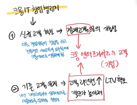 우선, 창업하고자 하는 사람들에게 챌린지를 주최함으로써 신규고객을 확보할 수 있다. 이렇게 들어온 신규 고객은 이후 창업을 하게 되었을 때 크몽의 엔터프라이즈(기업이용) 서비스를 이용할 잠재고객이 될 가능성이 높다. 한편, 기존에 크몽 서비스를 이용하고 있는 고객들에겐, 챌린지를 통해 크몽이 제공하는 상위 서비스를 이용할 수 있다. 따라서 고객 객단가가 높아지고 이것은 크몽 서비스를 이용하는 고객 리텐션이 높아지는 방법이 될 것이다.