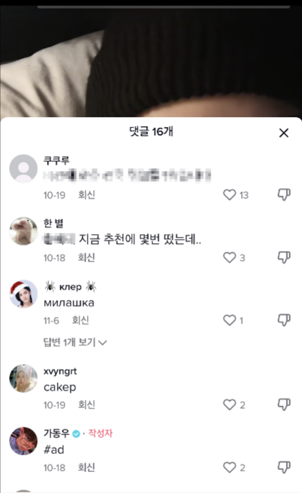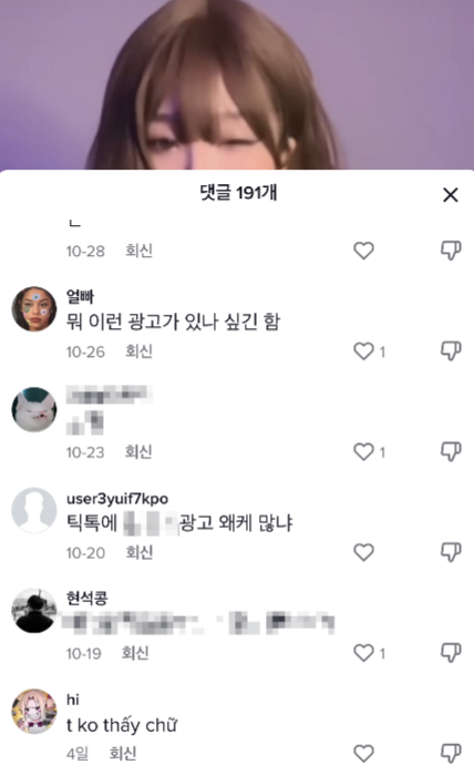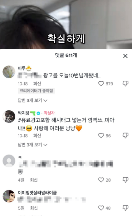 아래는 최근에 집행했던 광고 영상에 대한 댓글이다.