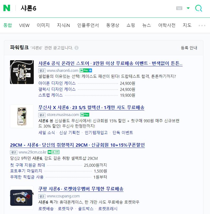 예를 들어, 휴대폰케이스와 일상라이프 제품까지 같이 판매하는 <샤론6> 광고를 보자.