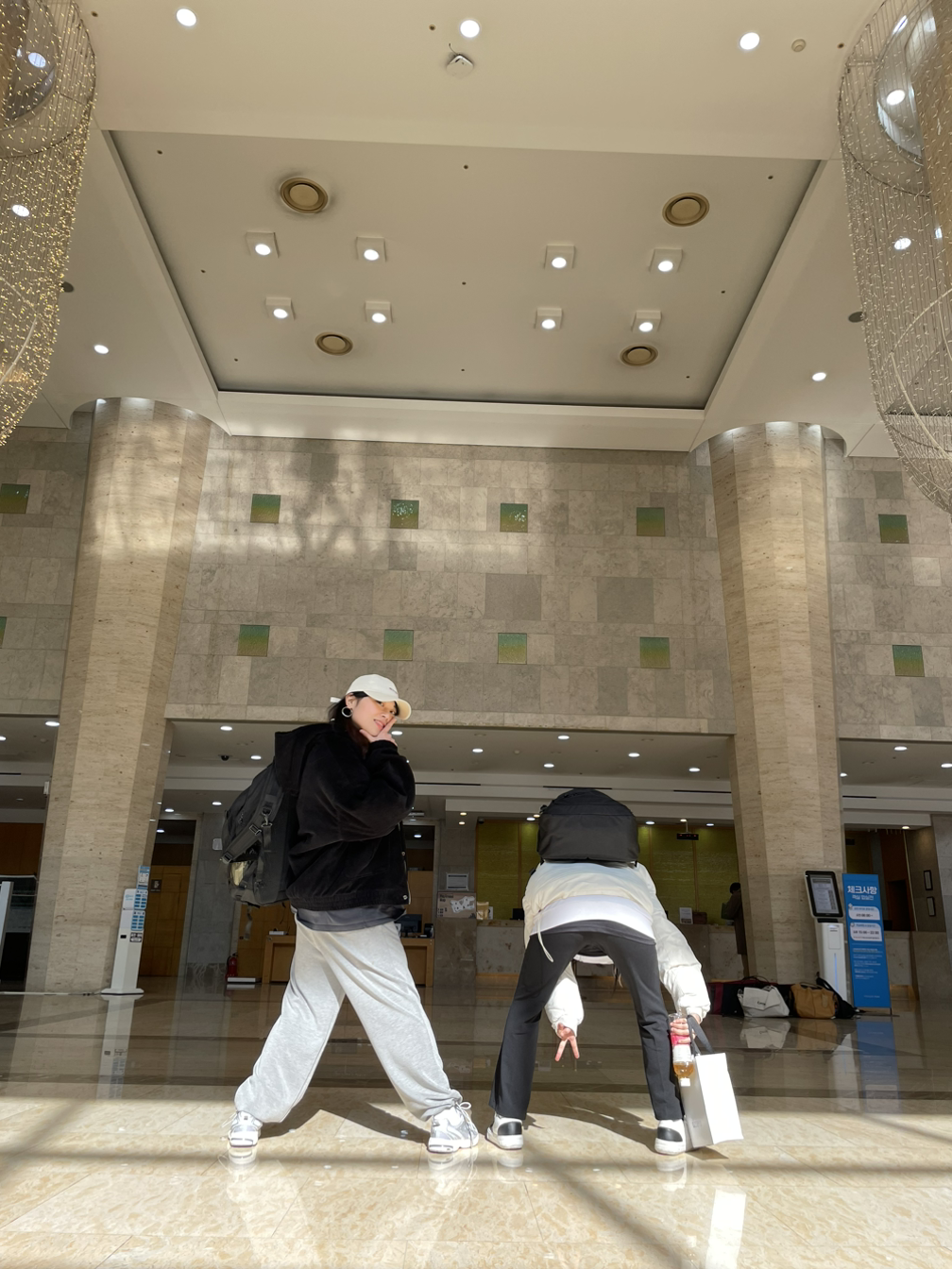 호텔 체크인을 기다리면서도 한시도 쉬지않는다. 사진 한장한장 찍는데도 이쁜 포즈가 아닌, 이색적인 포즈를 취하는 우리 틱톡커들...(정말 사랑해?) 생각해보면, 이 친구들은 세월호, 코로나 등등을 겪으면서 많은 재미있는 상황들을 즐기지 못했을 테다. 이렇게 다같이 놀고 즐기는 경험들이 어떻게 보면, 가장 큰 여행이지 않았을까 싶었다. 진짜 많이 들떠있었고 조그만한 것에도 꺄르르하면서 즐거워하더라.