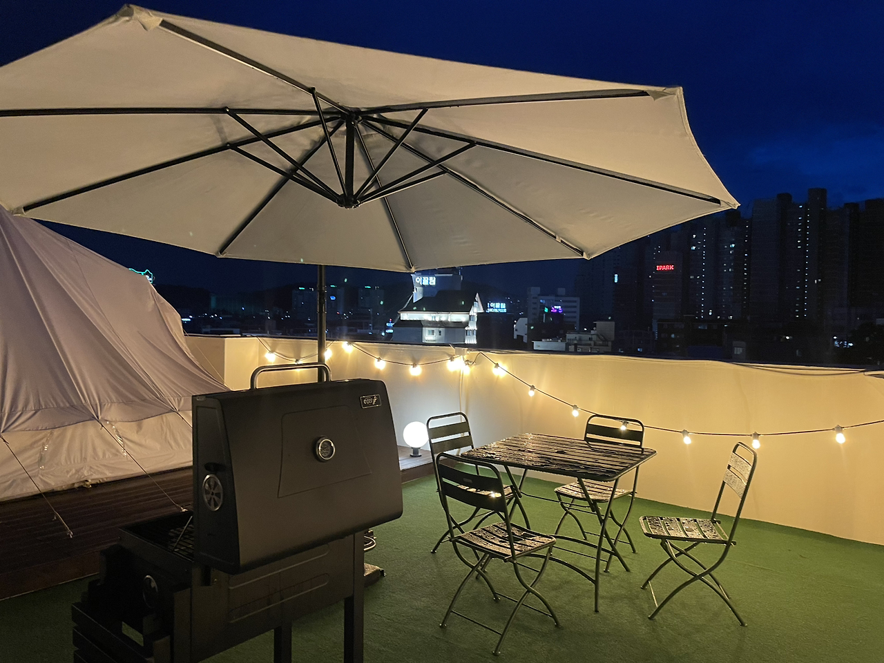 저녁 9시쯤, 각 크리에이터들이 촬영은 마쳤고 편집 작업을 진행해도 된다는 보고를 듣고나서는 자유시간을 가질 수 있었다. 특히, 밤야경을 전체 볼 수 있는 아늑호텔 천안점의 아늑캠프에서 다같이 모일 때 만난지 9시간만에 서로를 대면하는 시간을 갖는 것이었다. 도심 속에서 캠핑을 즐길 수 있다는 컨셉으로 구성된 아늑캠프는, 무척이나 아름답고 아늑함 그자체였다.