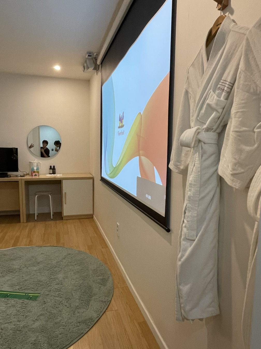 실제 이번 광고영상의 핵심은 아늑호텔 천안점에 있는 다양한 콘텐츠룸들을 소개하여 보는 시청자/팔로워들로 하여금, 오고싶게 하는 것이 목표였다. 때문에 추가 예약을 하는 것이 오히려 크리에이터들이 자유롭게 움직이며, 여러 방을 보여줄 수 있어 다양한 영상들이 나오기에 나쁘지 않은 선택인 셈이다. 실제 각 방 하나씩 가보면서 촬영 구경 혹은 체험을 해보면, 골프룸같은 경우 실제 카운터에서 골프채를 제공받고 스크린 골프를 칠 수 있고 무비룸에서는 넷플릭스가 있는 큰 스크린으로 이어져있어서 편안한 안마의자에서 시청할 수 있다.