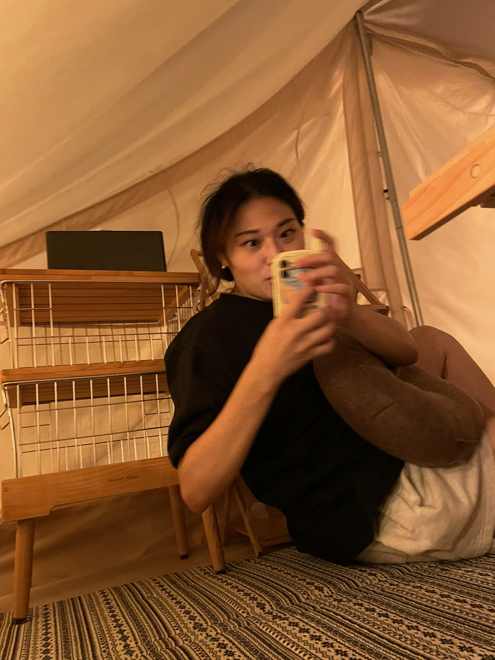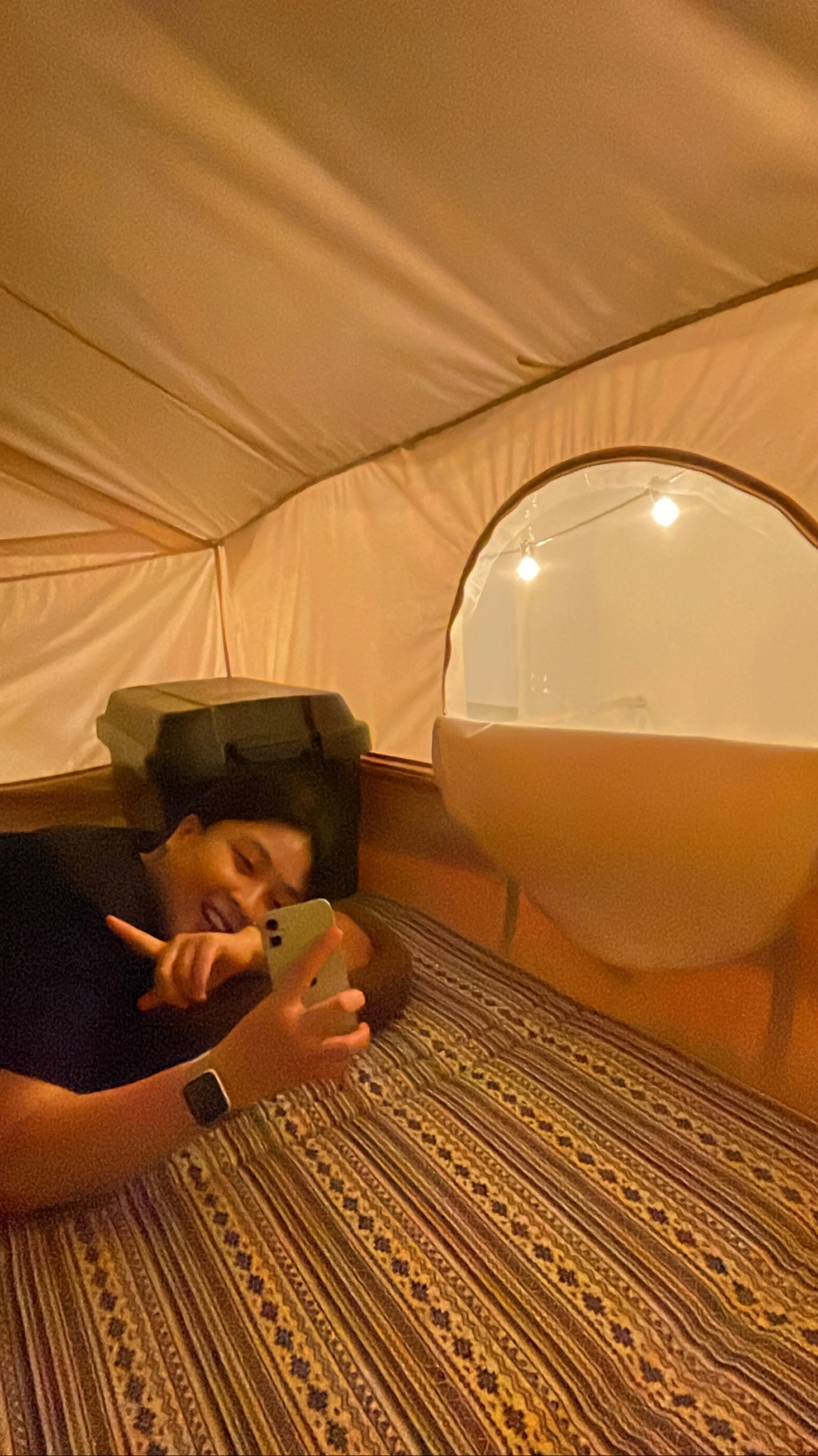 작은 전구로 둘러쌓인 아늑캠프 공간에 전기모닥불과 누울 수 있는 해먹, 캠핑 텐트 속에서 보드게임하고 놀 수 있는 보금자리 그리고 다같이 모여서 놀 수 있는 캠핑장이 있었다. 그 때 챙겨온 음식들과 과자, 음료들로 세팅을 하여 정말 친구들끼리 MT 온 듯한 환경을 만들었다. 나 역시도 틱톡 크리에이터 14명을 드디어 한 자리에 모아놓고 인사할 수 있는 자리라고 느낄 정도로 그날 하루동안은 정신없이 분주했다.