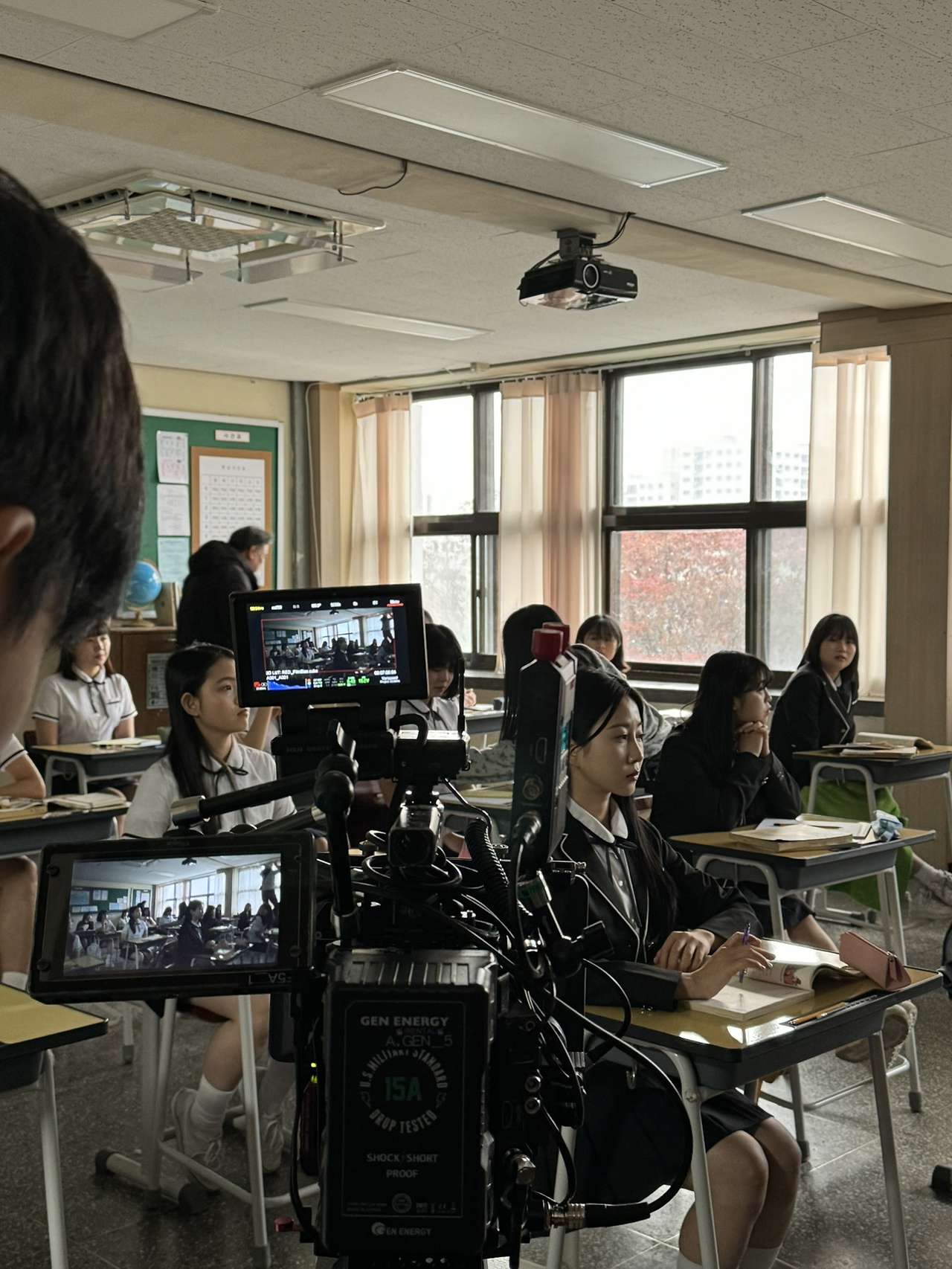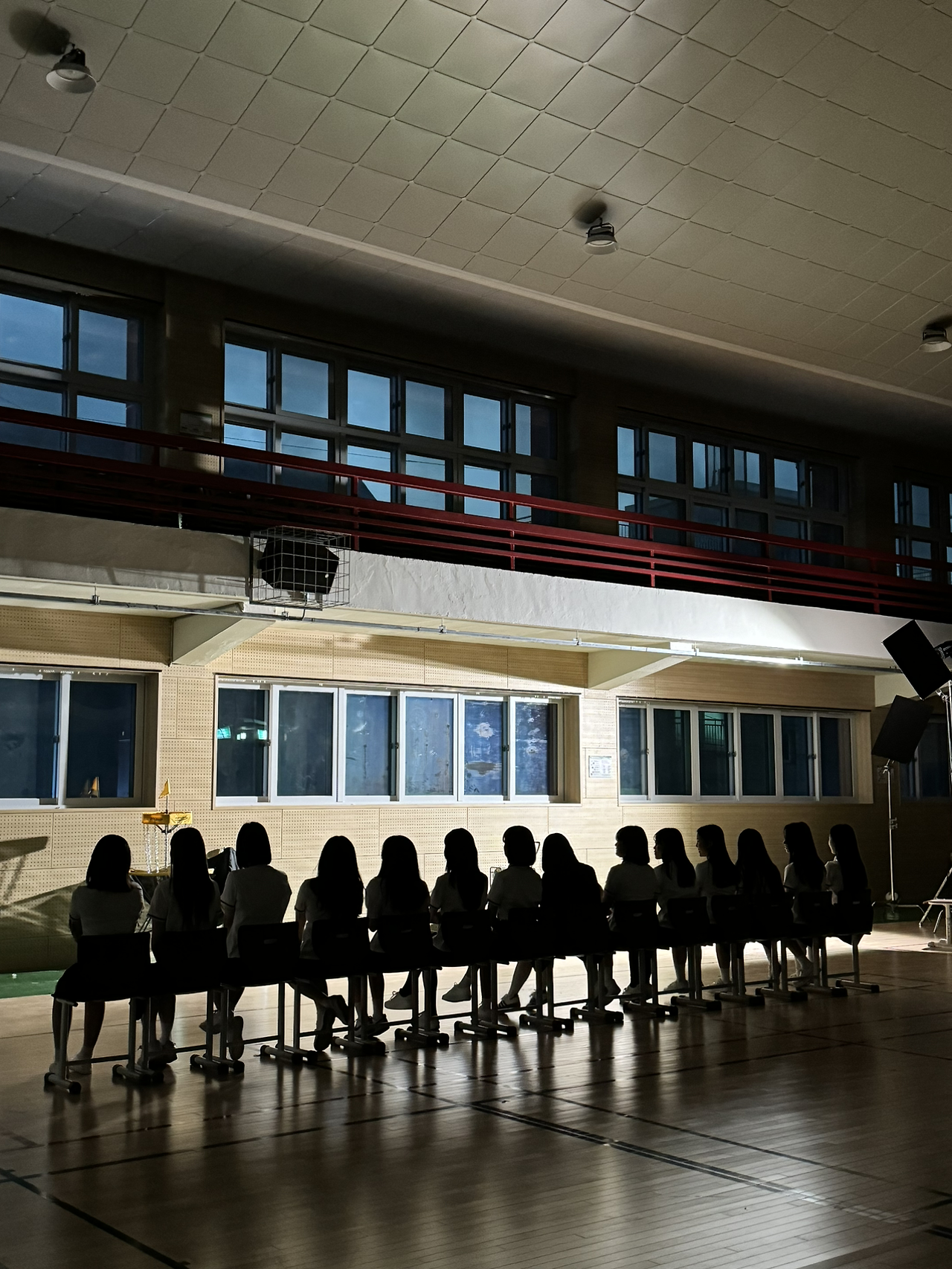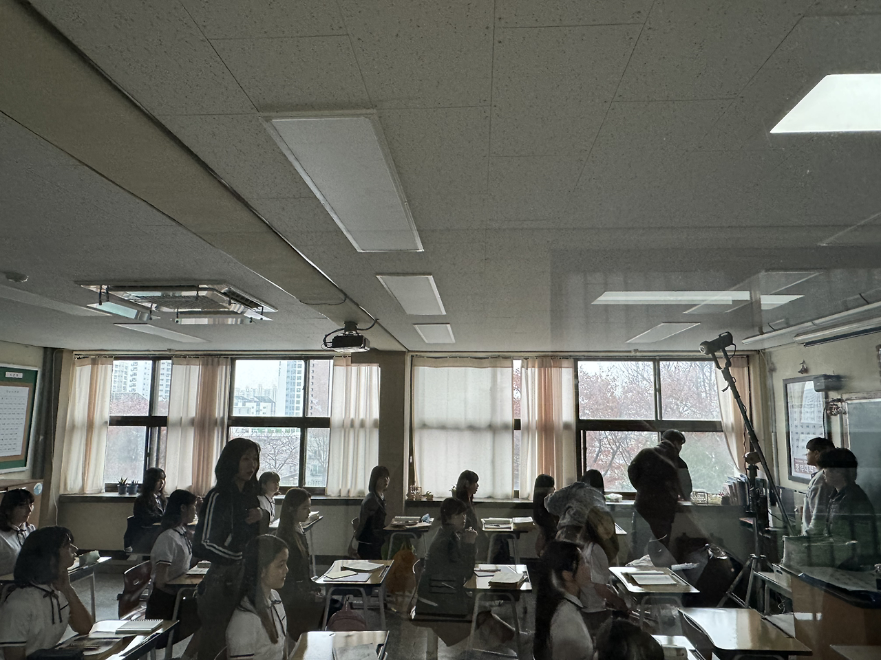 장시간 동안 지속된 피로감과 긴장감 속에서도, 교복과 체육복 차림의 학생/선생님 배우분들 역시 열정적으로 연기하면서 서로가 지치지 않도록 응원하고 있었다. 장소변화에 따라 교실, 복도, 강당 등 학교 곳곳을 누비면서 그들 역시 작은 배역에 상관없이 진지하게 연기를 하였다.