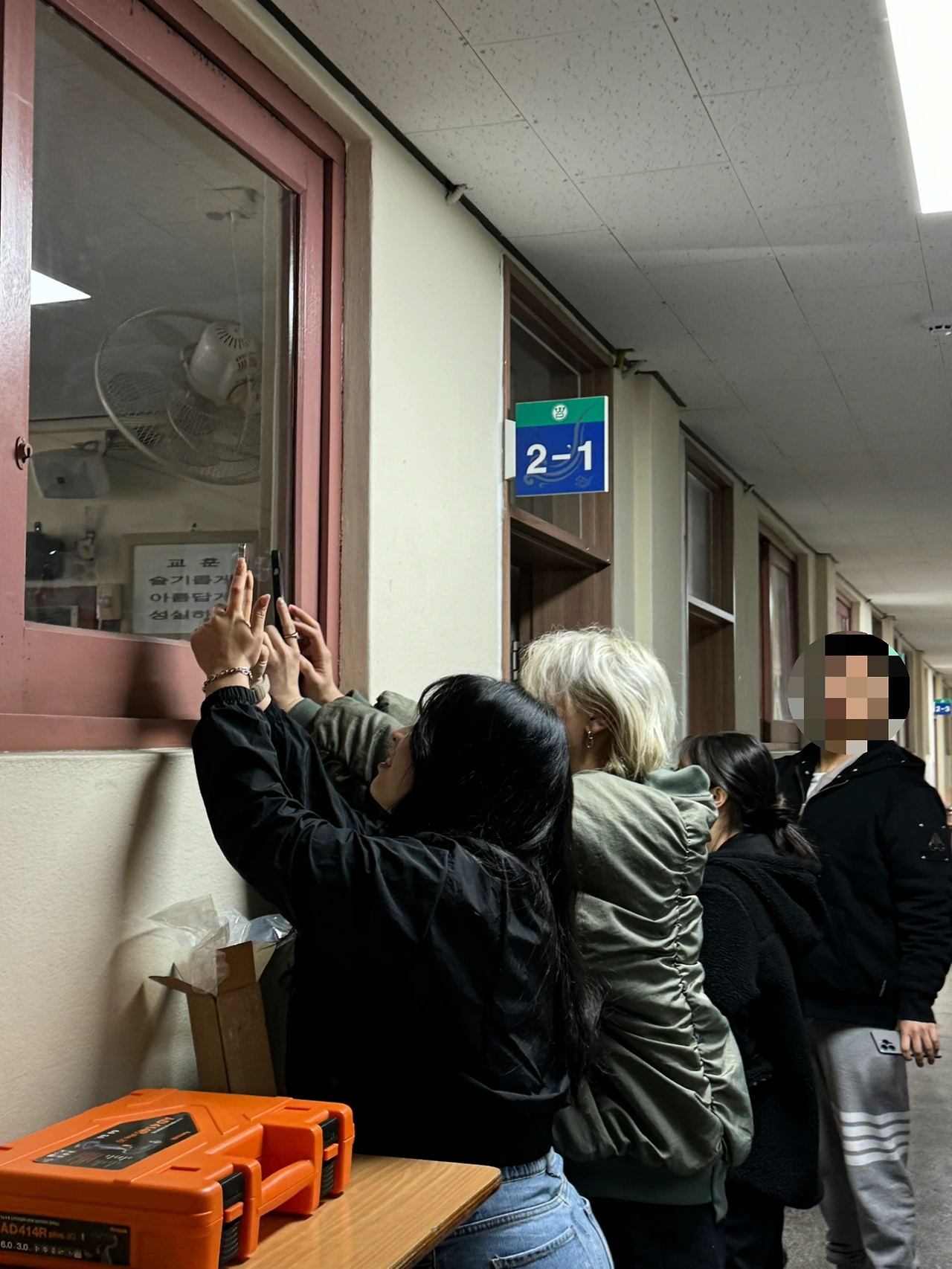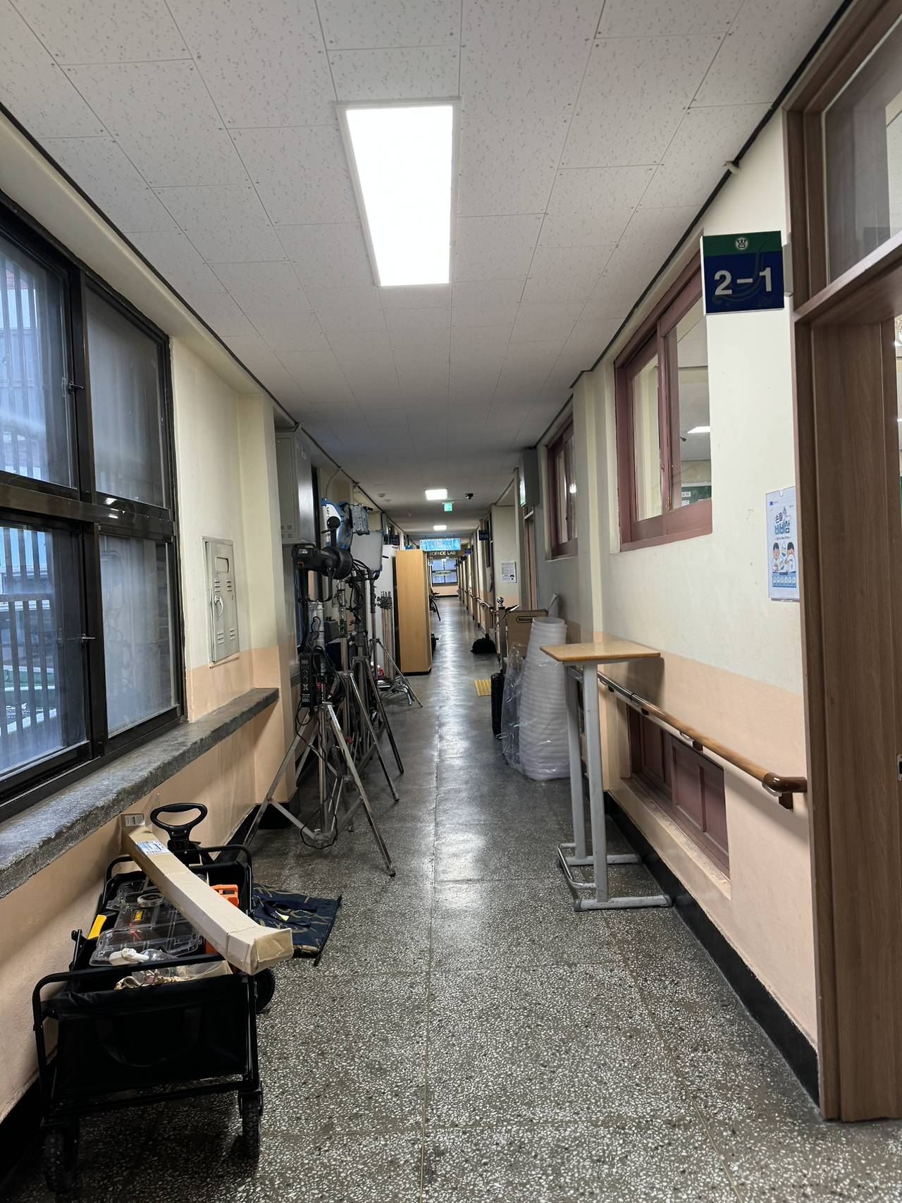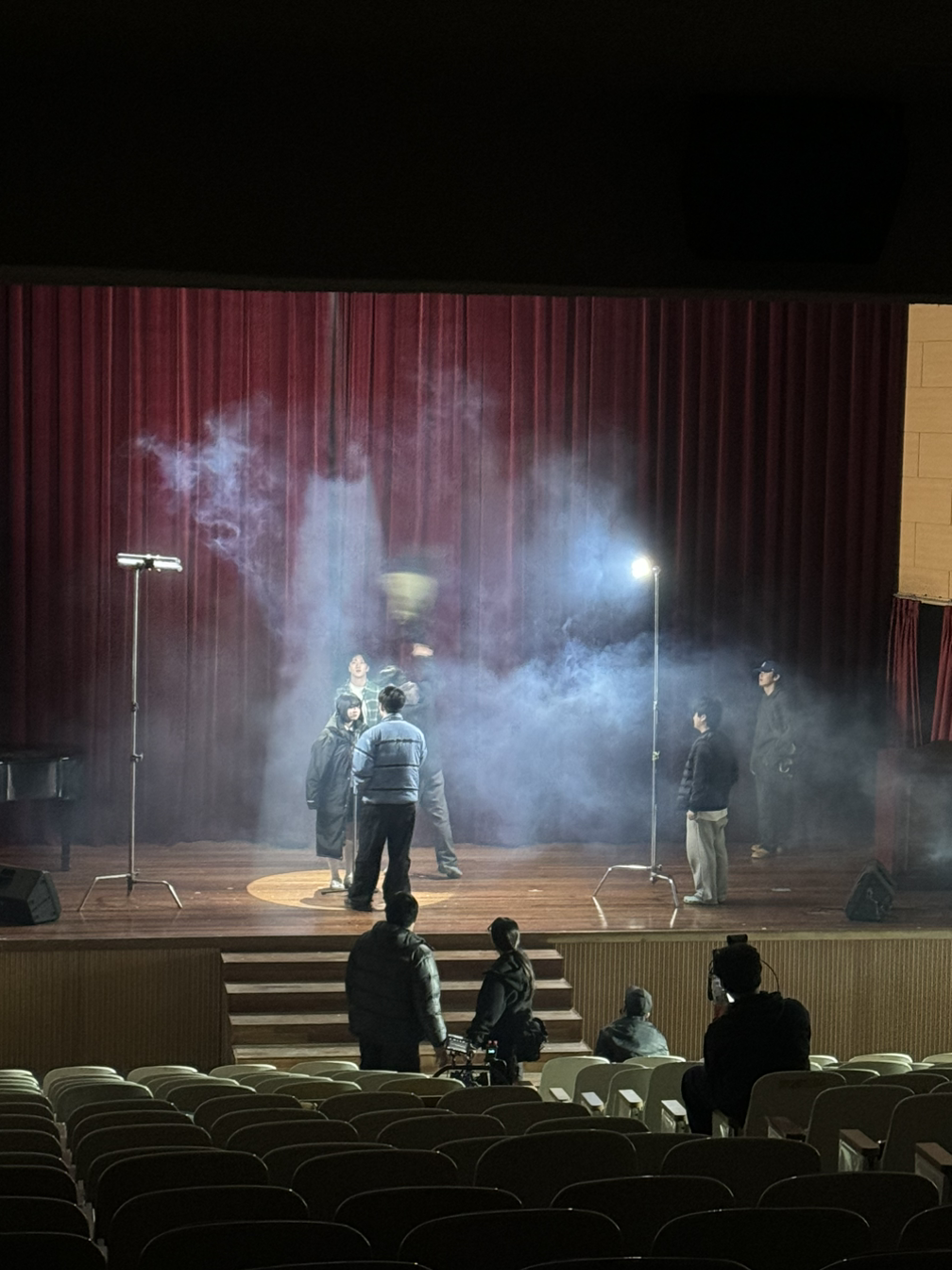 장시간 동안 지속된 피로감과 긴장감 속에서도, 교복과 체육복 차림의 학생/선생님 배우분들 역시 열정적으로 연기하면서 서로가 지치지 않도록 응원하고 있었다. 장소변화에 따라 교실, 복도, 강당 등 학교 곳곳을 누비면서 그들 역시 작은 배역에 상관없이 진지하게 연기를 하였다.